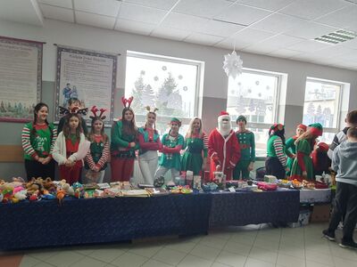 Minął już rok od ostatniej wizyty świętego Mikołaja w naszej szkole. Najwidoczniej uznał, że byliśmy grzeczni (albo raczej staraliśmy się za takich uchodzić ) i w tym roku znów nas odwiedził. 8 grudnia na szkolnym holu powstało więc