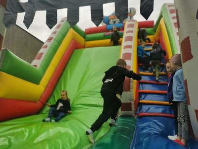Dnia 1 czerwca obchodziliśmy w przedszkolu Dzień Dziecka. Na dzieci czekało wiele atrakcji i niespodzianek m. in. dmuchana zjeżdżalnia, która wywołała najwięcej radości. W tym dniu nie zabrakło również ulubionych przysmaków dzieci. Były lody, popcorn, ciasteczka i desery....