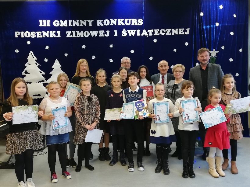 Spotykaliśmy się już trzeci raz, aby w piosence wspominać święta i przywołać zimę. Uczestnicy zaśpiewali w dwóch kategoriach: klasy I-IV i V-VIII. Każdy na swój sposób zachwycił swoim głosem jury oraz publiczność. Jury miało duży problem z wyborem najlepszych. Wszyscy czekali z wielkim niepokojem, kto zdobędzie najwyższe nagrody. I tak w kategorii klas I-III miejsce I- Maria Hoffmann, II – Jan Remblewski, III – Jagoda Hajdysz; w kategorii klas V-VIII miejsce I – Dobrosława Wielgosz, II – Katarzyna Kula, III – Martyna Kobus. Konkurs przygotowały panie D. Będziecha i I. Jagodzińska.