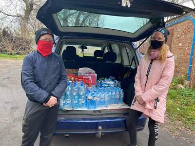 - akcja "Butelka wody dla chorych na Covid-19 przekazana przez harcerzy z 5DH do szpitala powiatowego w Jarocinie"