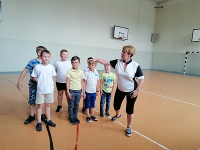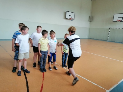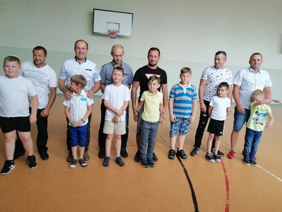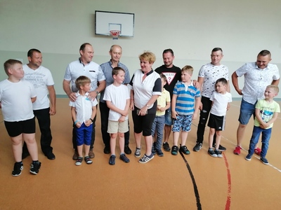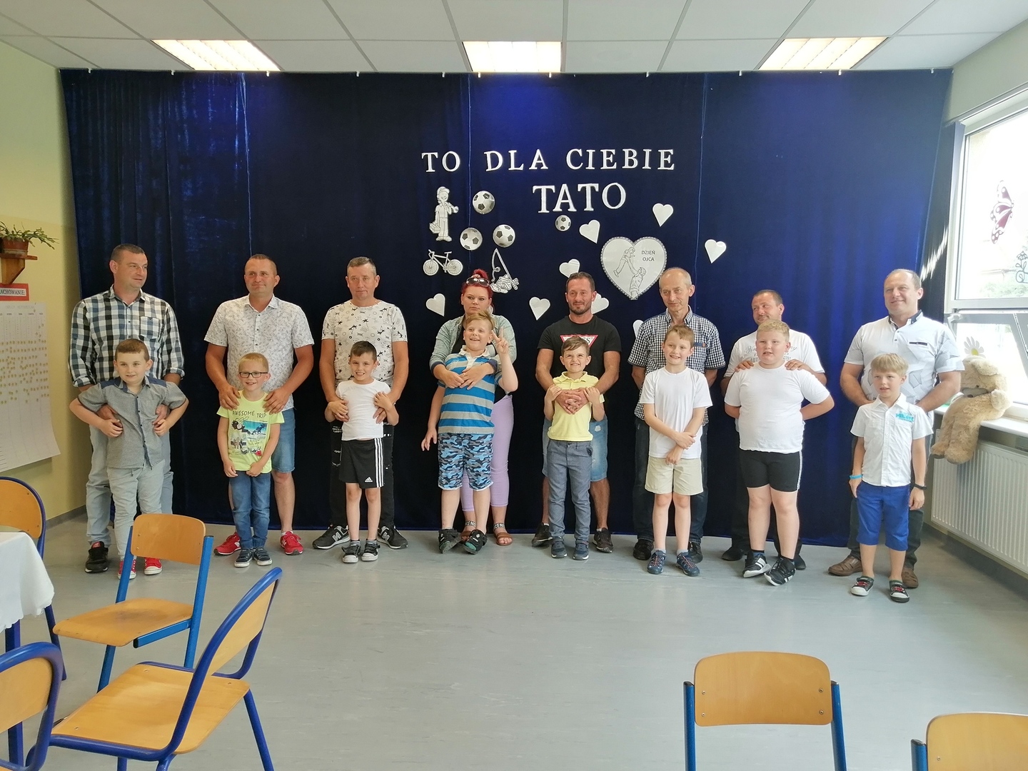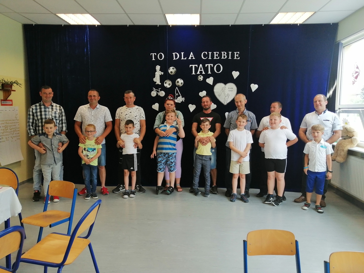 23.06.2021 r. w Dzień Ojca uczniowie klasy 1 z wychowawczynią Aliną Łapaj i nauczycielką wspomagającą I. Kaczmarek zaprosili swoich tatusiów oraz dyrektora szkoły R. Stoleckiego na uroczystość z okazji ich święta. Przedstawili montaż poetycko-muzyczny "TO DLA CIEBIE TATO". Część artystyczna przygotowana została na kółku artystyczno - muzycznym pod kierunkiem wychowawczyni. Scenariusz przerobiono i dostosowano do pierwszoklasistów jak i choreografię. Uczniowi wyrazili wdzięczność recytując wiersze, włączając tatusiów do gimnastyki np. " Tato, tato powiedz mi , czy potrafisz zrobić to co my"?, wyśpiewali życzenia...'bo mój tata majster, matematyk, umie zrobić wszystko... . Uczniowie podarowali własnoręcznie wykonane laurki oraz obdarowali tatusiów upominkami. Po poczęstunku przygotowanym przez mamusie, którym serdecznie dziękuję, odbył się bardzo emocjonujący mecz, który dla gości był niespodzianką. Ponieważ jest to w historii naszej szkoły pierwsza klasa składająca się tylko z chłopców wychowawczyni zaproponowała taki pomysł swoim wychowankom spotykając się z ich aprobatą. Wiele radości przyniósł mecz TATA KONTRA SYN. Choć chłopcy przegrali w pierwszym meczu 2:O . Tatusiowie przejęli się rolą! to sędzia A. Łapaj dokonała wyboru zespołów już mieszanych i w drugim choć połowa klasy była zadowolona wygrywając 3:O Spotkanie było miłe i sprawiło chłopcom jak i rodzicom wiele radości.