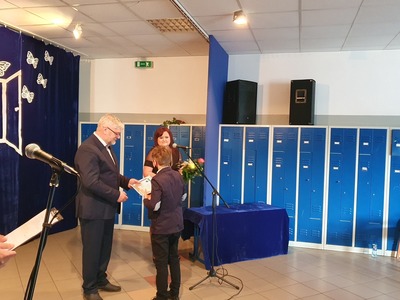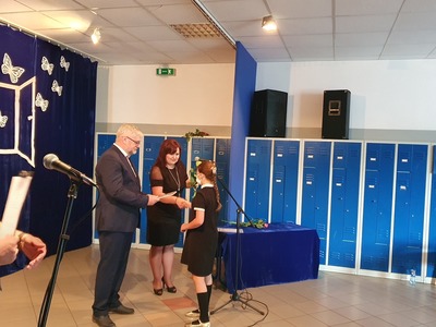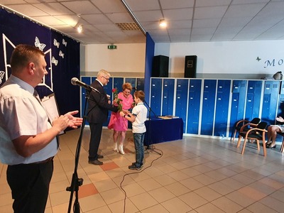 O godzinie 9.00 dyrektor szkoły wręczył świadectwa z wyróżnieniem uczniom klas IV-VIII. Uczennica klasy VIII Wiktoria Biegańska złożyła podziękowania dla nauczycieli i pracowników obsługi szkoły. Absolwenci naszej szkoły otrzymali nagrody książkowe i dyplomy.