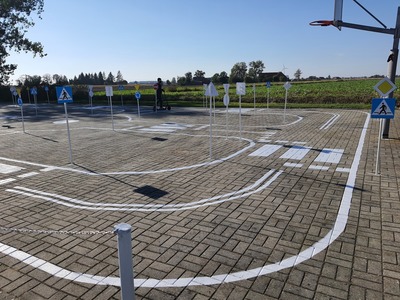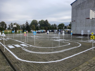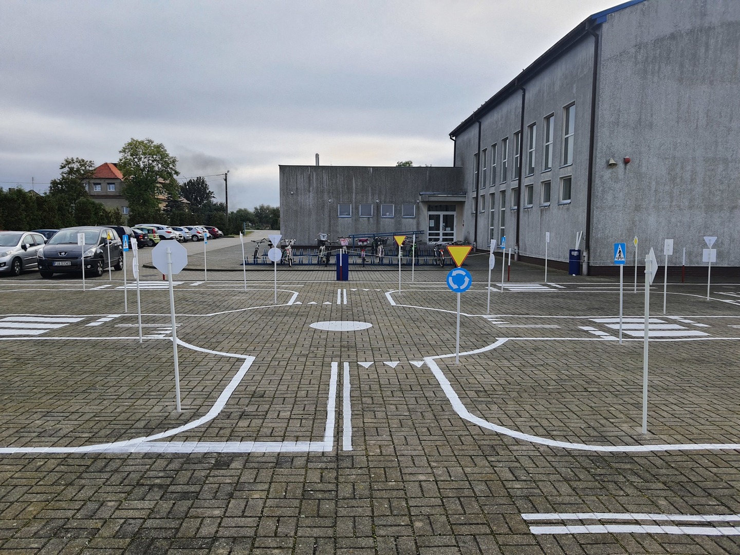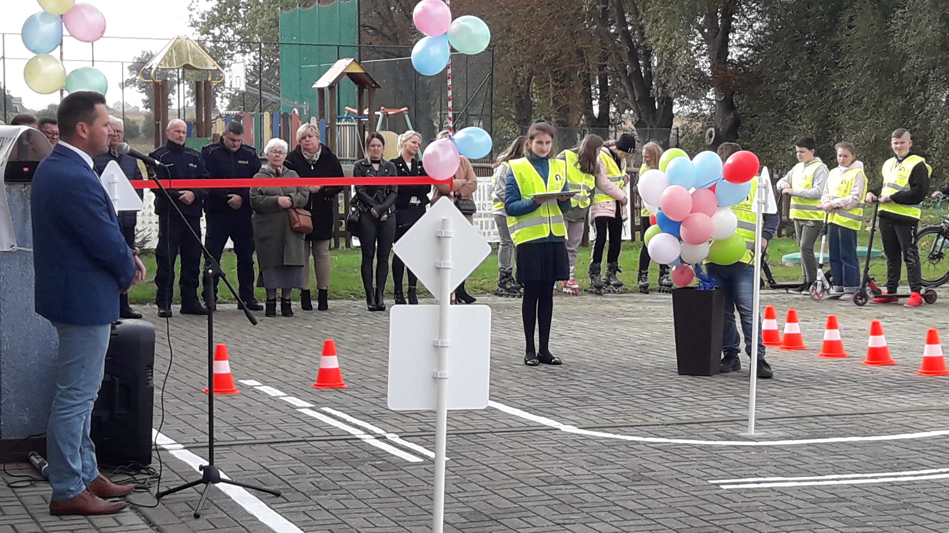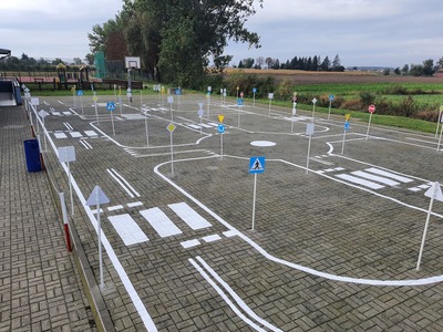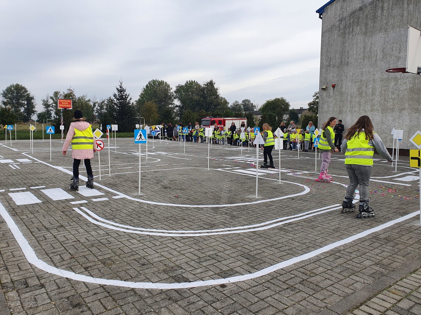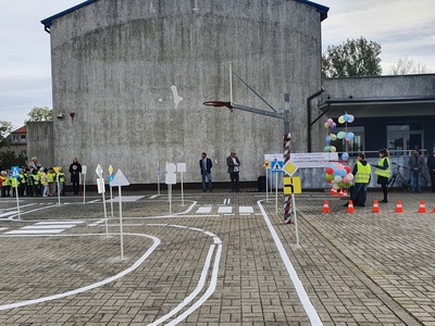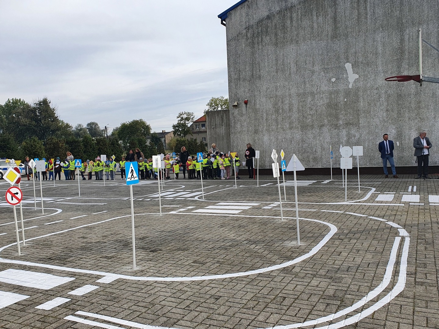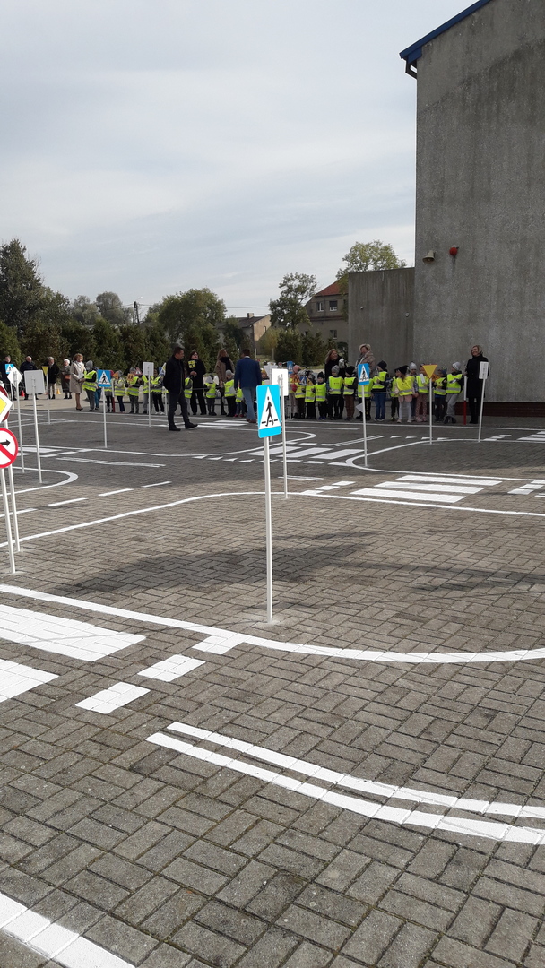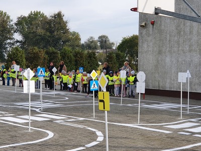 11 października na placu obok szkoły zrobiło się wesoło i kolorowo. Tego dnia nastąpiło uroczyste otwarcie przyszkolnego miasteczka ruchu drogowego. Jest to plac, na którym zaznaczono jezdnie, skrzyżowania i ustawiono znaki drogowe. Będzie on służył jako pomoc dydaktyczna do bezpiecznego szkolenia małych uczestników ruchu drogowego.