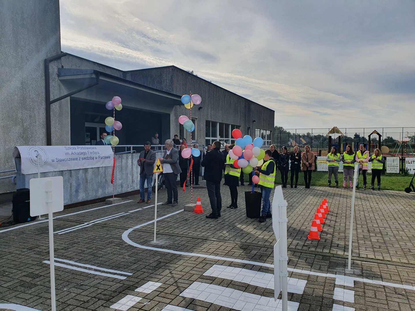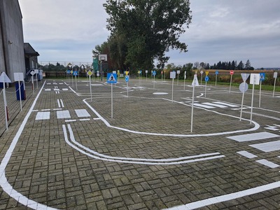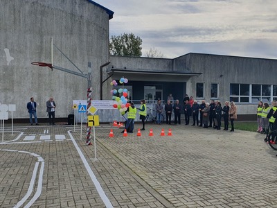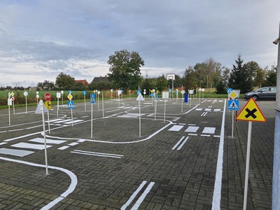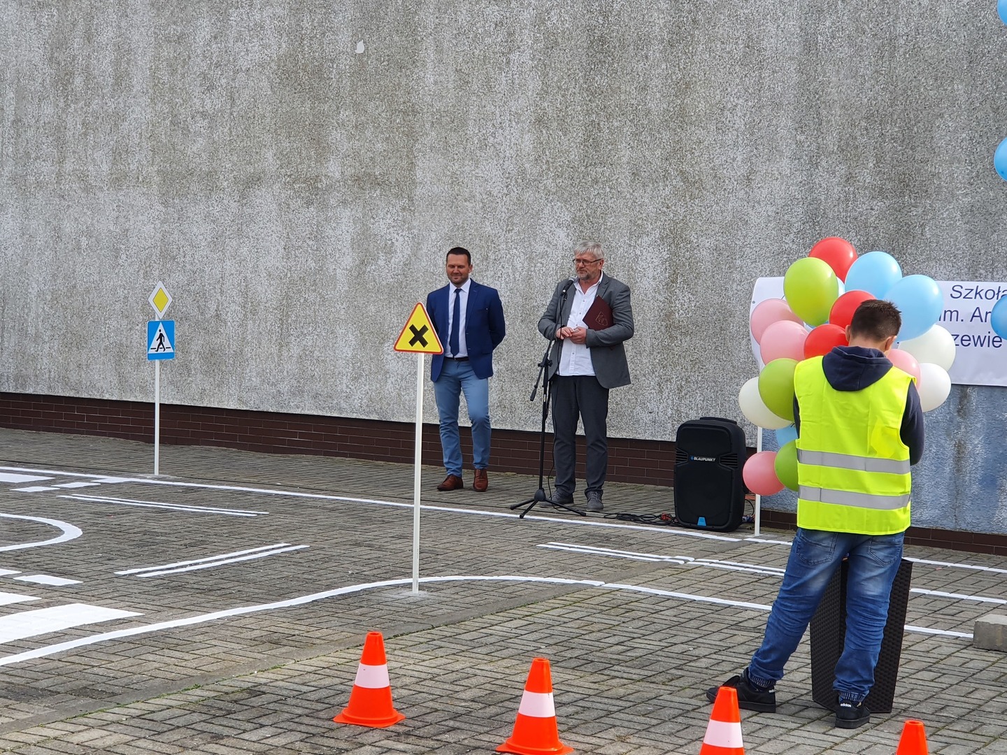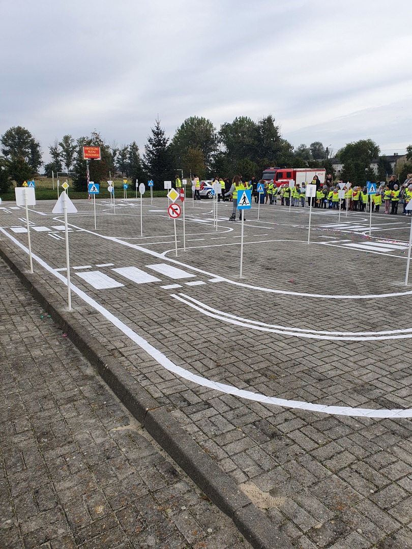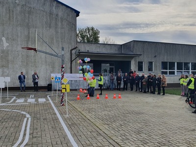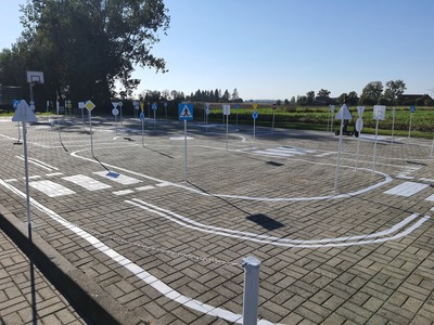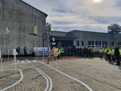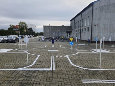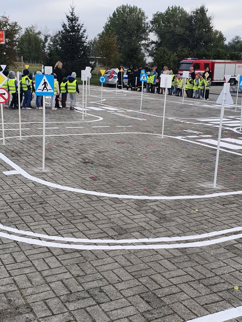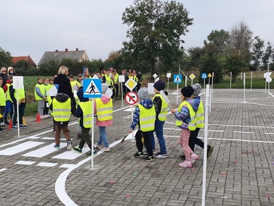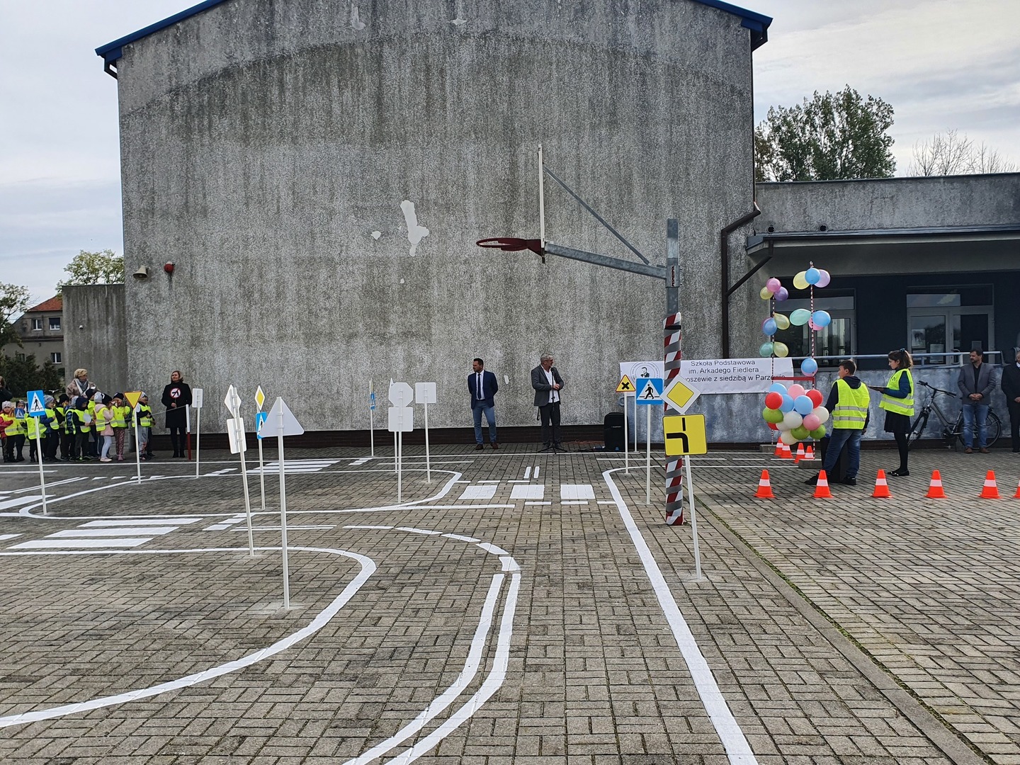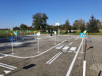 11 października na placu obok szkoły zrobiło się wesoło i kolorowo. Tego dnia nastąpiło uroczyste otwarcie przyszkolnego miasteczka ruchu drogowego. Jest to plac, na którym zaznaczono jezdnie, skrzyżowania i ustawiono znaki drogowe. Będzie on służył jako pomoc dydaktyczna do bezpiecznego szkolenia małych uczestników ruchu drogowego.
