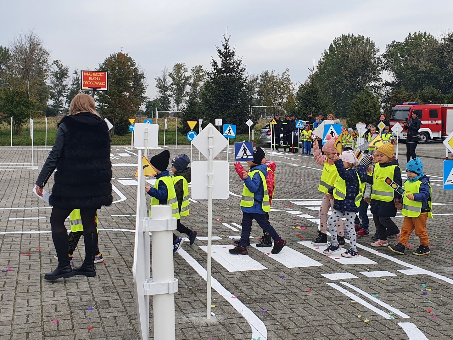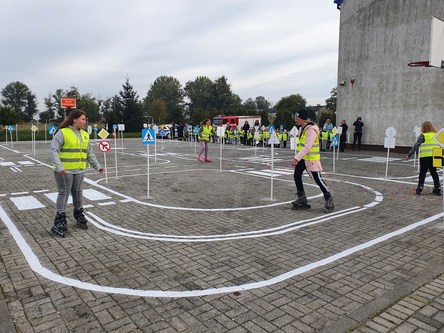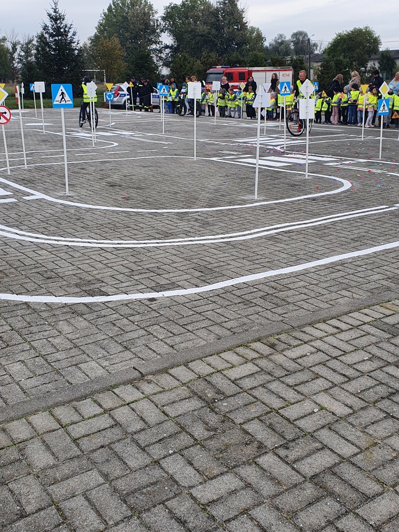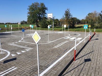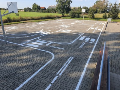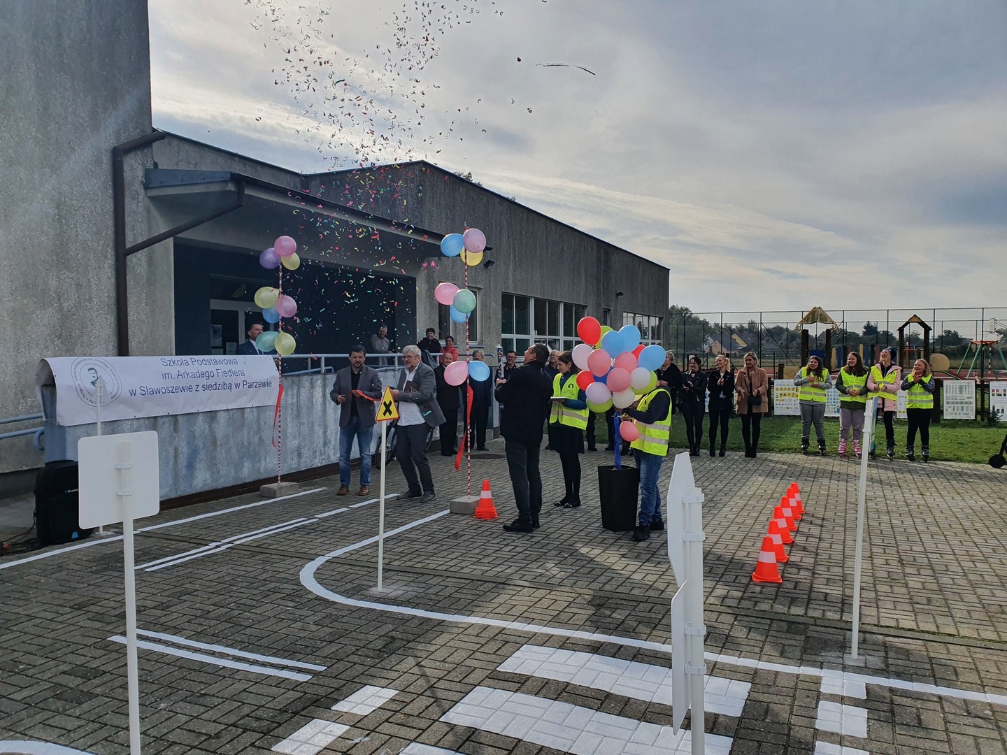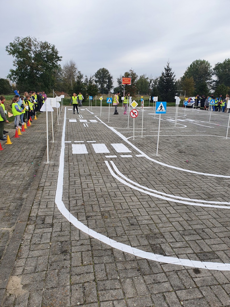 11 października na placu obok szkoły zrobiło się wesoło i kolorowo. Tego dnia nastąpiło uroczyste otwarcie przyszkolnego miasteczka ruchu drogowego. Jest to plac, na którym zaznaczono jezdnie, skrzyżowania i ustawiono znaki drogowe. Będzie on służył jako pomoc dydaktyczna do bezpiecznego szkolenia małych uczestników ruchu drogowego.