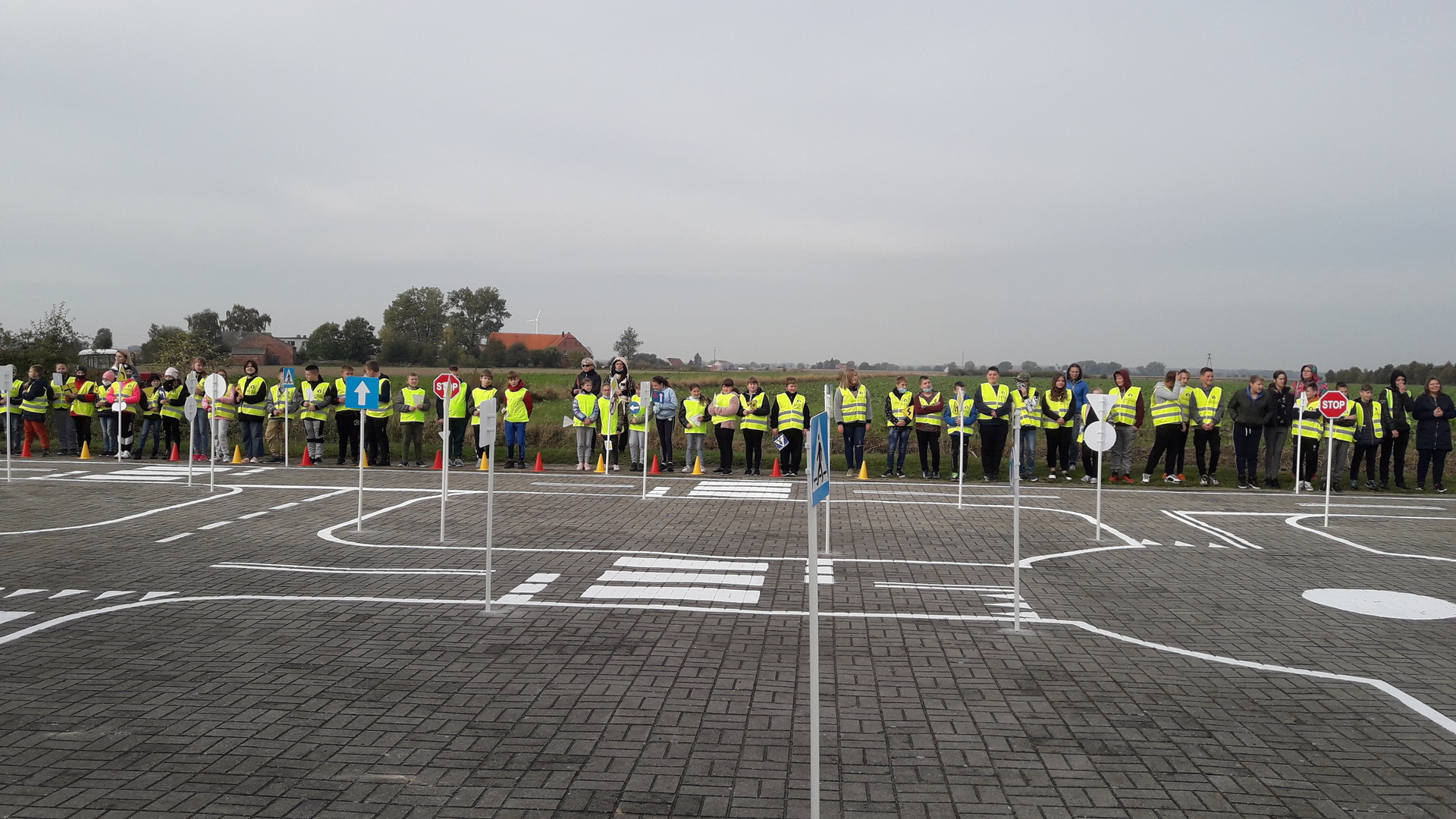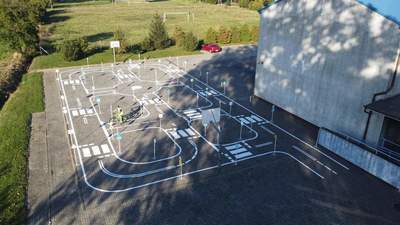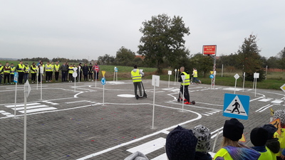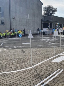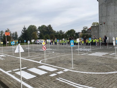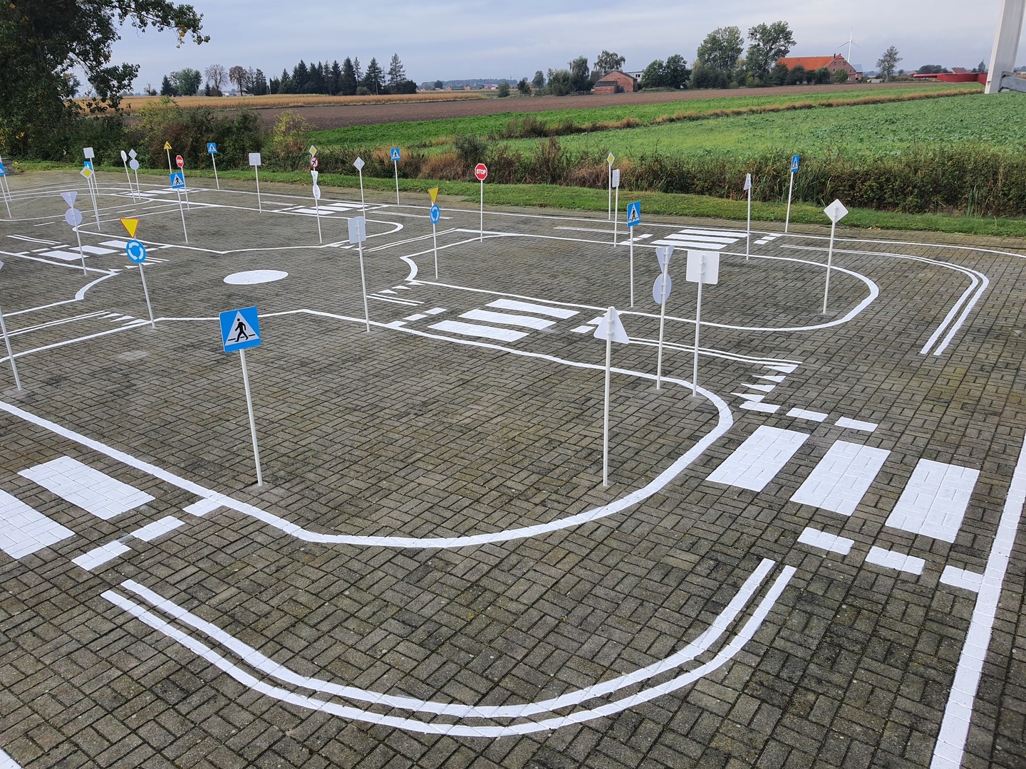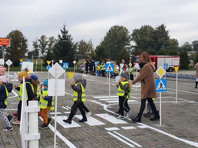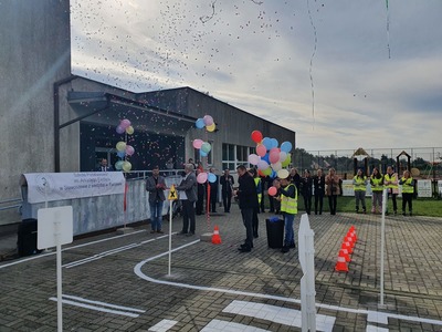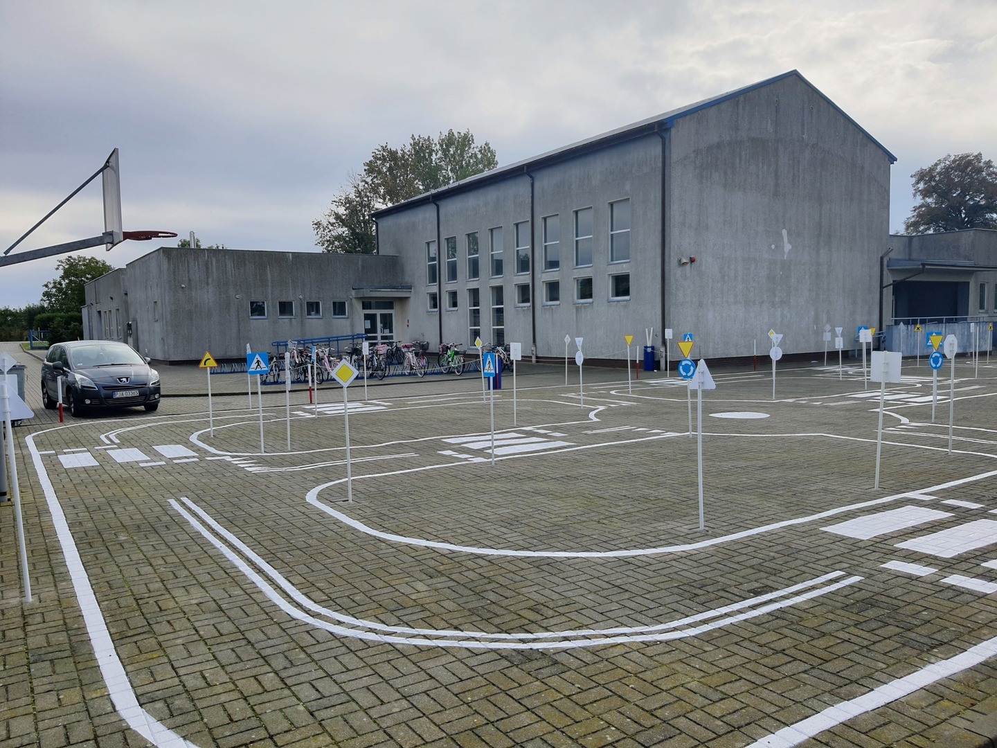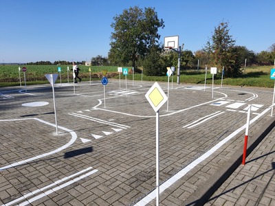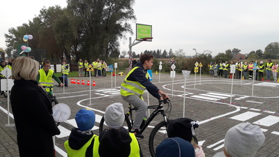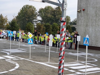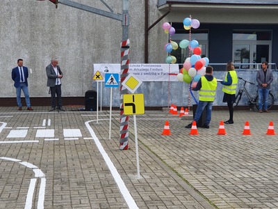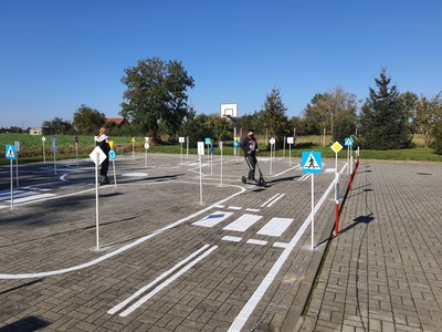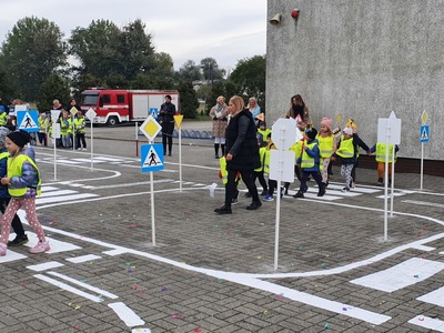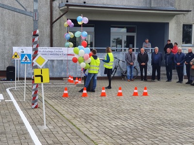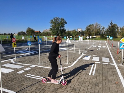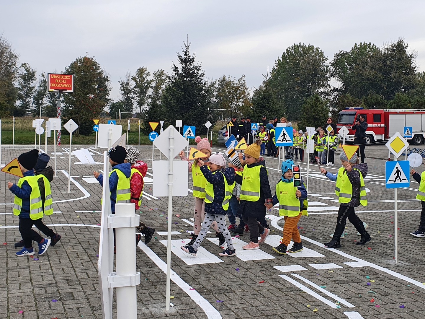 11 października na placu obok szkoły zrobiło się wesoło i kolorowo. Tego dnia nastąpiło uroczyste otwarcie przyszkolnego miasteczka ruchu drogowego. Jest to plac, na którym zaznaczono jezdnie, skrzyżowania i ustawiono znaki drogowe. Będzie on służył jako pomoc dydaktyczna do bezpiecznego szkolenia małych uczestników ruchu drogowego.