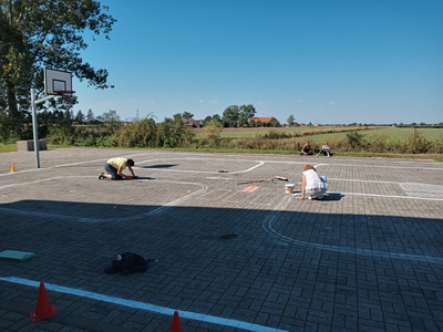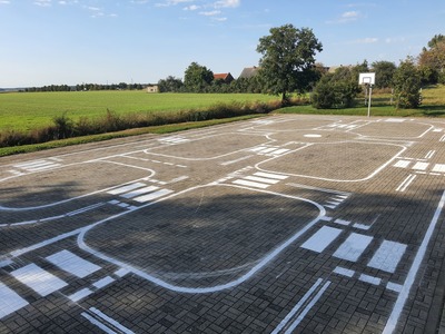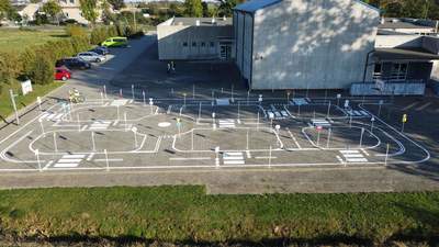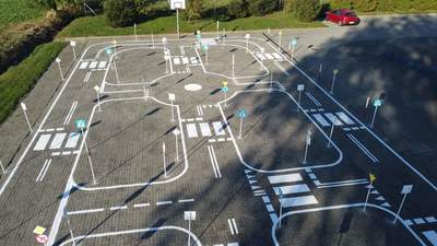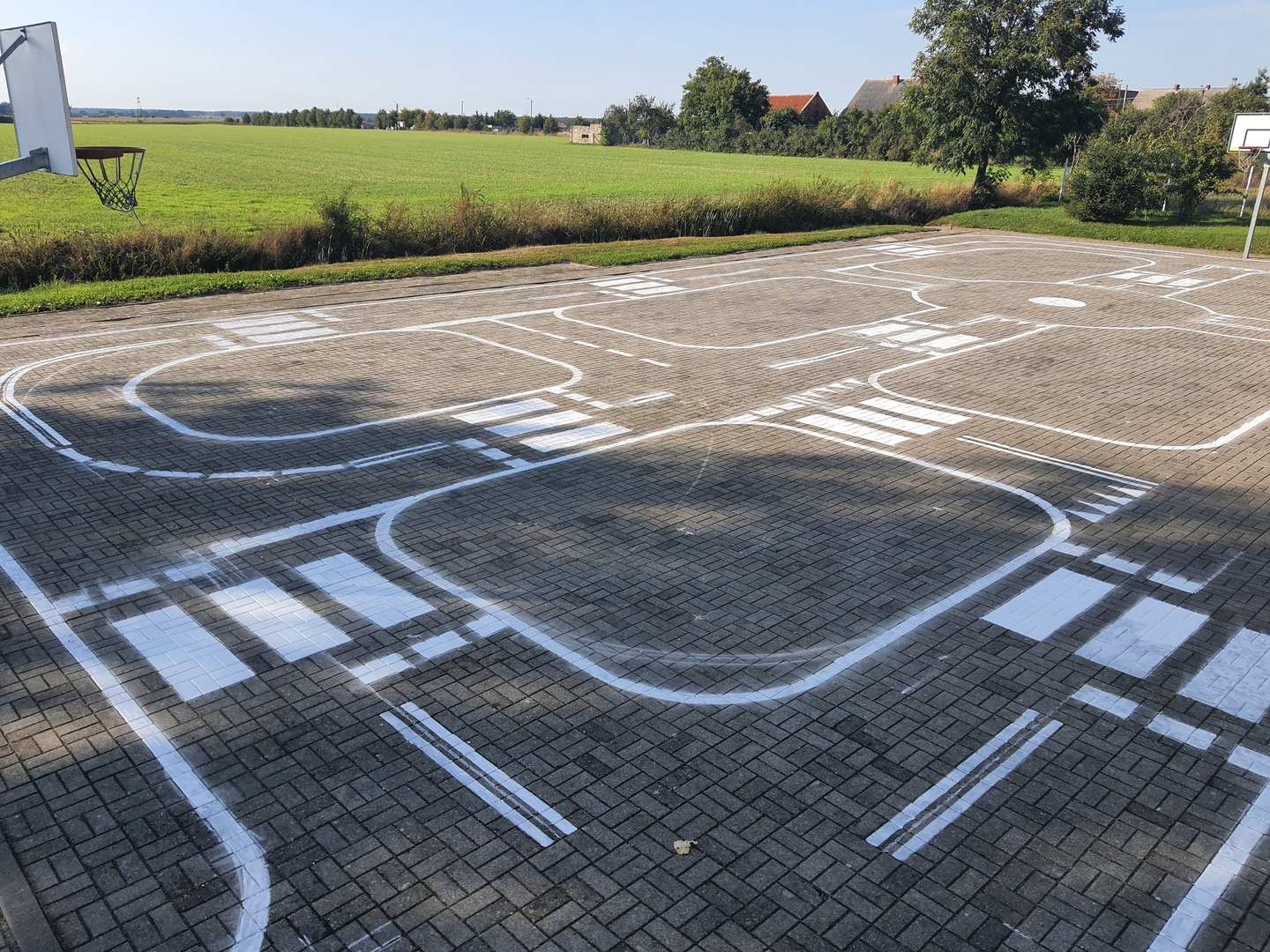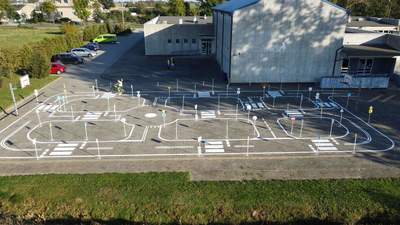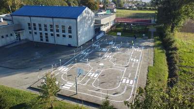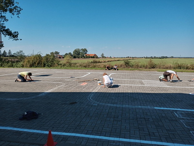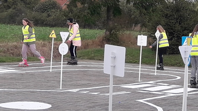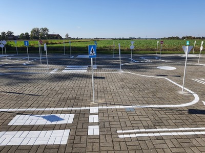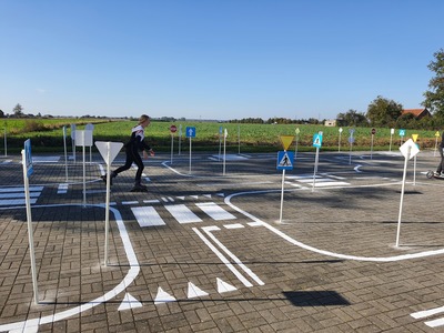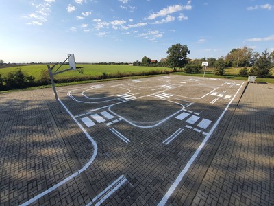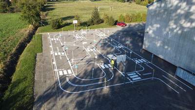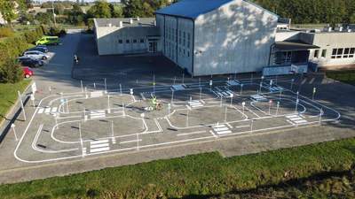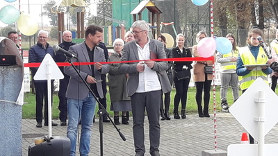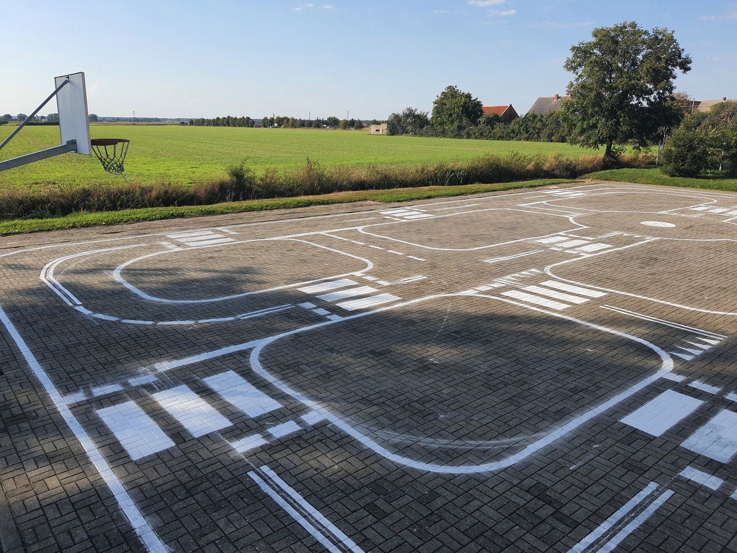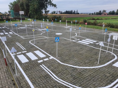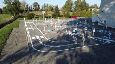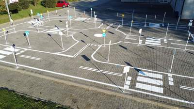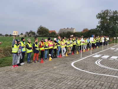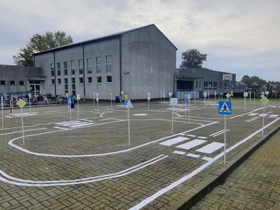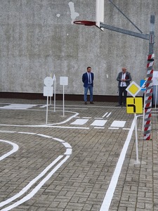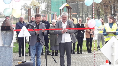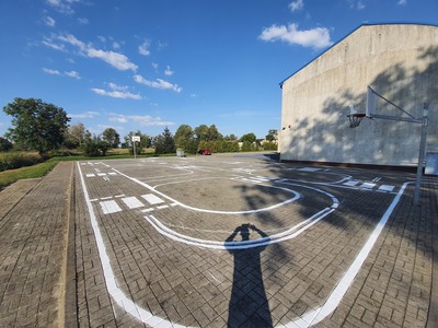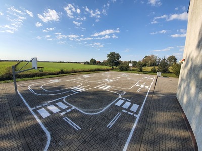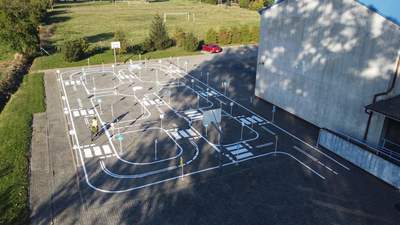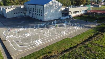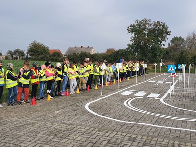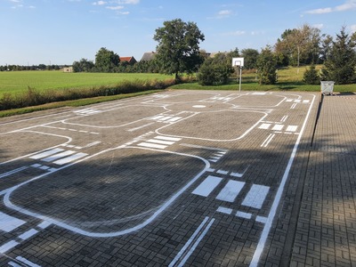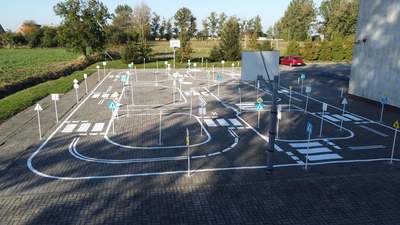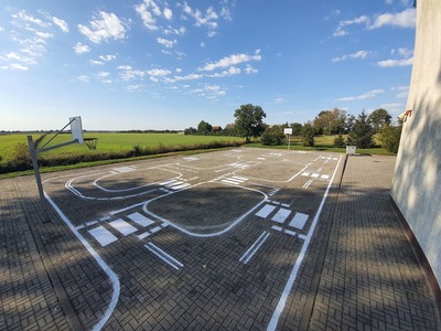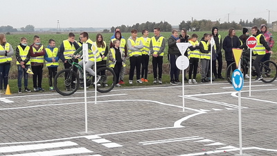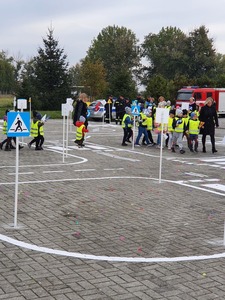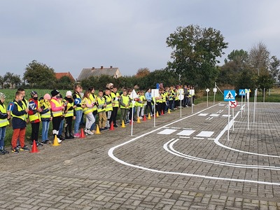 11 października na placu obok szkoły zrobiło się wesoło i kolorowo. Tego dnia nastąpiło uroczyste otwarcie przyszkolnego miasteczka ruchu drogowego. Jest to plac, na którym zaznaczono jezdnie, skrzyżowania i ustawiono znaki drogowe. Będzie on służył jako pomoc dydaktyczna do bezpiecznego szkolenia małych uczestników ruchu drogowego.