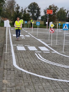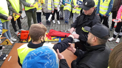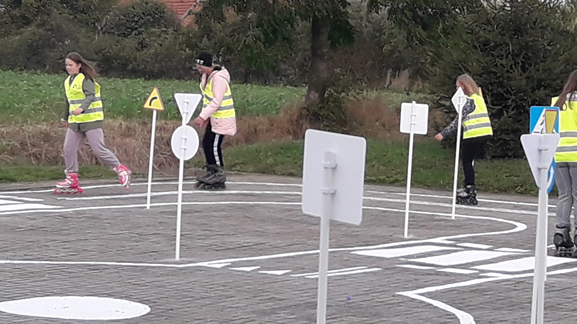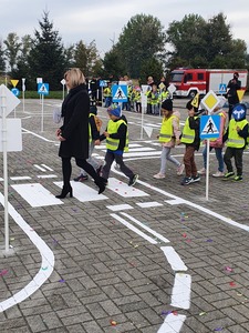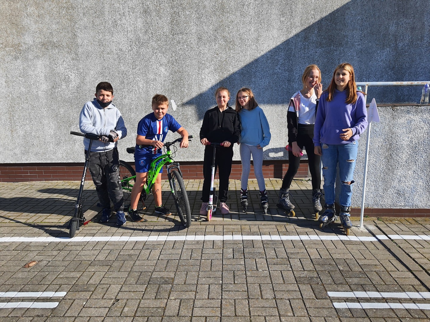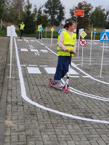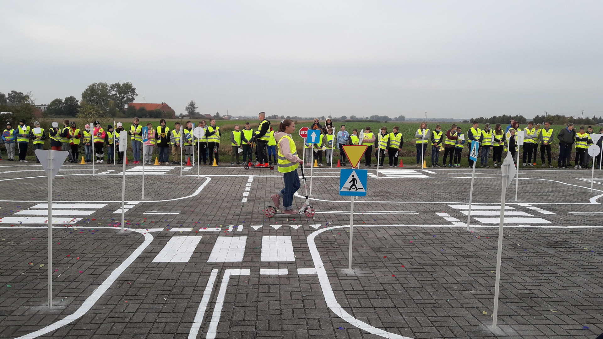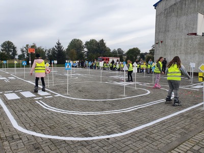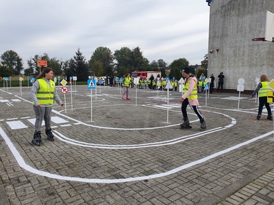 Parę minut później miasteczko ożyło. Na jego ulicach pojawili się uczniowie przejeżdżający się na rolkach, hulajnogach i rowerach. Pieszych reprezentowali najmłodsi – czyli przedszkolacy i uczniowie klas I-III, którzy ubrani w odblaskowe kamizelki przemierzyli miasteczko, oczywiście, zgodnie z przepisami, czyli przechodząc bezpiecznie po pasach.