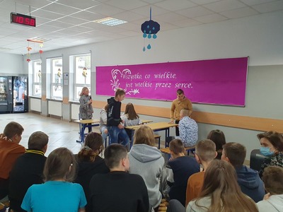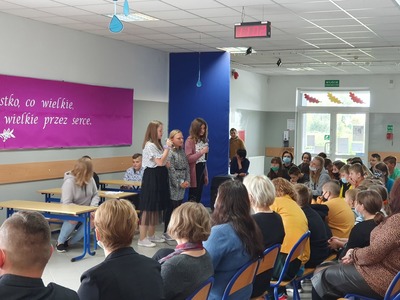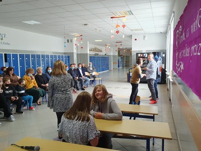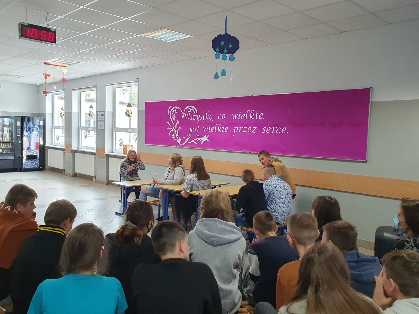 15 października cała szkolna społeczność zgromadziła się na holu, by podziękować nauczycielom i pracownikom szkoły za cierpliwości wsparcie w uczniowskim życiu.