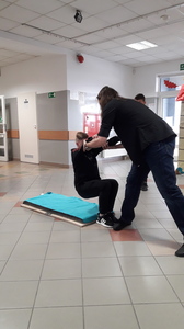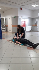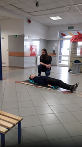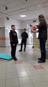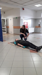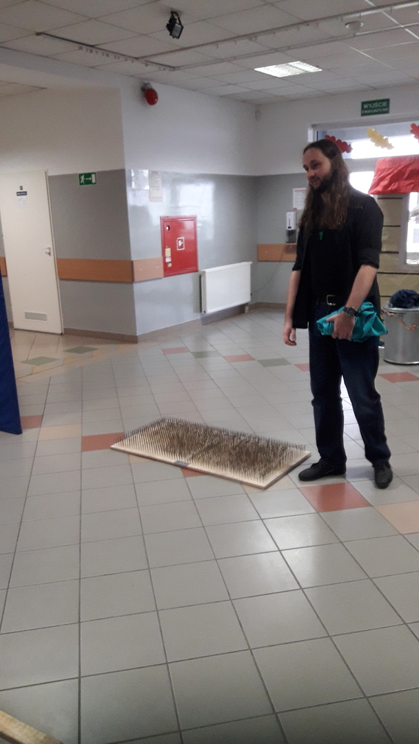 Na koniec zaś - próba odwagi. Na śmiałków czekało „łoże fakirów”, czyli deska naszpikowana 1588 gwoździami (ok. 7 kg). Dzięki wskazówkom i pomocy p. Mateusza nasi szkolni „fakirzy” spędzili kilka, jak sami zapewniali, relaksujących chwil na kolczastej leżance.