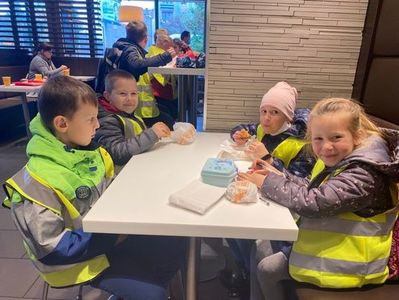 Spotkania z kulturą - wycieczka klas I-IV do teatru w Kaliszu na pouczający spektakl „Tadek -Niejadek” i McDonalda - 4.11.2021.