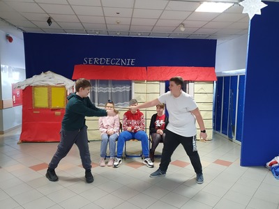 Walka na miecze nie przyniosła rozstrzygnięcia. Ostateczna bitwa rozegrała się na śnieżki i liście między Wietrzykami i Bałwankami.