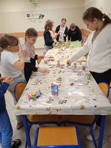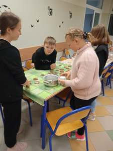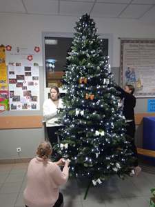Dnia 3 i 4 grudnia z okazji Dnia Wolontariusza panie I. Jagodzińska i D. Będziecha zorganizowały biwak dla chętnych członków Szkolnego Koła Wolontariatu. Rozpoczęliśmy od dekorowania holu szkolnego. Młodsi wolontariusze zawieszali gwiazdki w przedsionku szkoły, a starsi ubierali szkolną choinkę. Później odbyło się wycinanie pierników, a rolę piekarza przejęła p. Jagodzińska. Potem wolontariusze dekorowali upieczone pierniki przyniesionymi ozdobami. Wszyscy wykazali się talentem dekoratorskim. Pierniczki wolontariusze zabiorą do domu i poczęstują nimi rodziców i rodzeństwo.