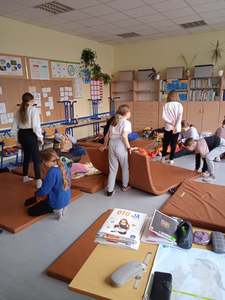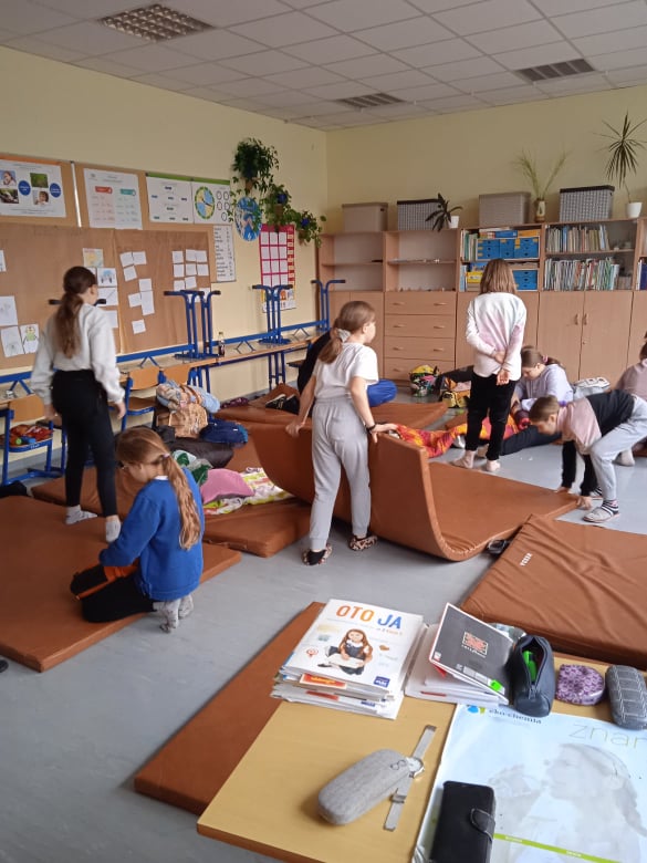 Rano nie wszyscy chcieli się obudzić. Teraz chcieliby sobie pospać, ale trzeba było podnieść się z ciepłych legowisk. Był jeszcze czas na sprzątanie i zabawy na sali gimnastycznej.