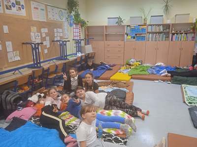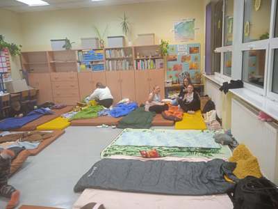 Po przygotowaniu miejsc do spania i wieczornej toalecie odbyły się nocne zabawy przy światełkach. Oj działo się, działo… Niektórzy zasnęli dopiero „wcześnie” rano.