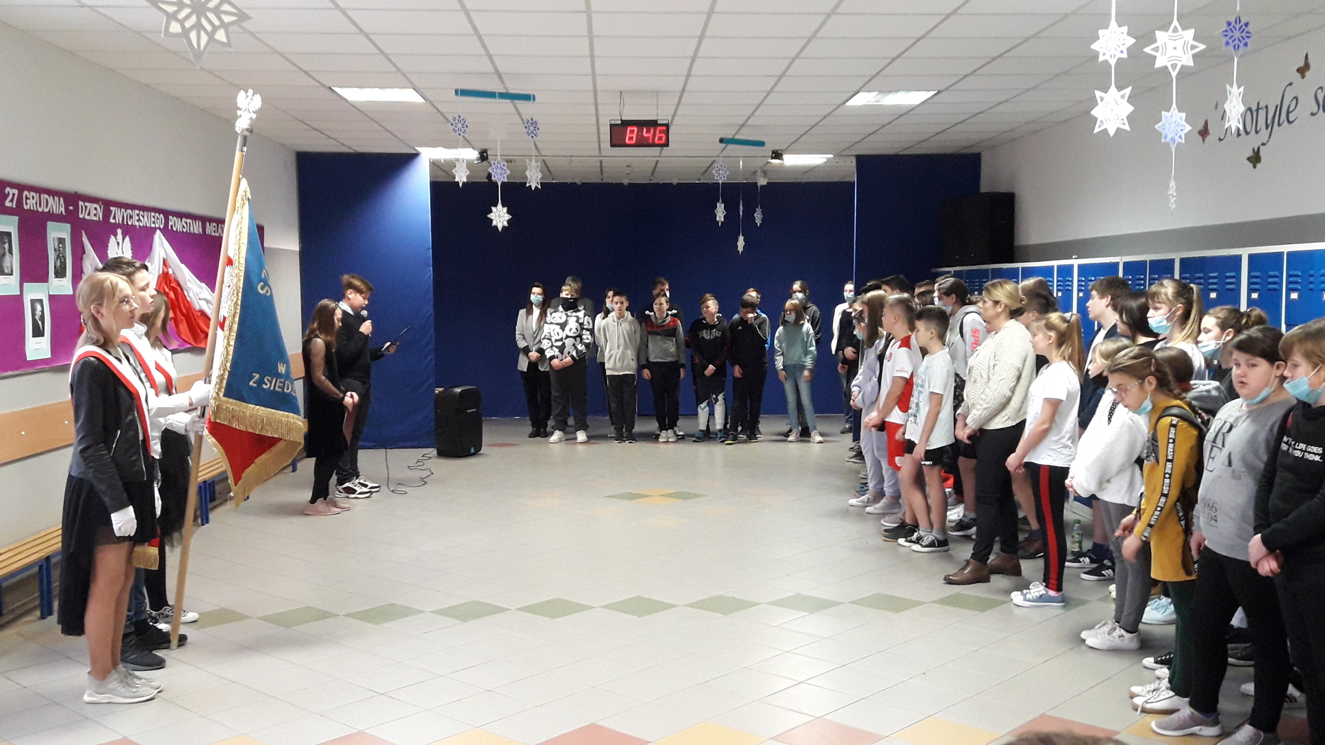 Apel, na którym zgromadziła się cała szkolna społeczność, rozpoczął się od wprowadzenia sztandaru szkoły i wspólnego odśpiewania „Mazurka Dąbrowskiego”. Następnie uczniowie klasy VII przedstawili najważniejsze fakty związane z wybuchem i przebiegiem Powstania Wielkopolskiego. Siódmoklasiści mówili więc o entuzjastycznym powitaniu Ignacego Paderewskiego w Poznaniu, impulsie do wybuchu narodowowyzwoleńczego zrywu, jego kolejnych dowódcach, a także o kierunkach powstańczych akcji.