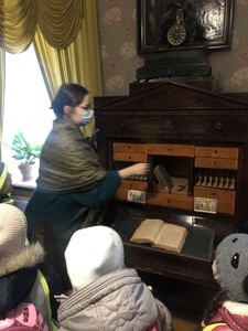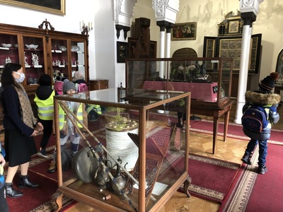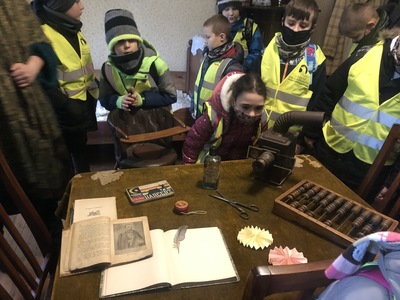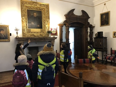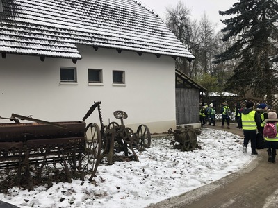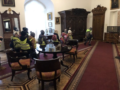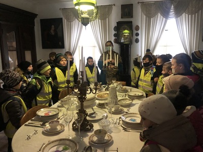W Koszutach, uczestnicy wycieczki pod opieką pani przewodnik, przechadzali się po pokojach dworku. Podczas zwiedzania dzieci obejrzały dawne wyposażenie wnętrz oraz zastawę stołową. Mogły podziwiać pięknie rzeźbione meble, stare piece kaflowe i ręcznie malowaną zastawę stołową. Dzieci i ich opiekunowie dowiedzieli się, jakie zwyczaje panowały w dworku, kto go zamieszkiwał. Wielkie zdziwienie wywołał wygląd toalety, która niczym nie przypominała współczesnej łazienki. Pani przewodnik opowiadała, czym zajmowała się pani mieszkająca w dworku, a czym pan. Uczniowie mogli obejrzeć wiele sprzętów domowych, których już się nie używa, np. koziołek do ściągania butów, lampy naftowe i wiele innych. Po wyjściu z dworku dzieci podziwiały park w zimowej scenerii.