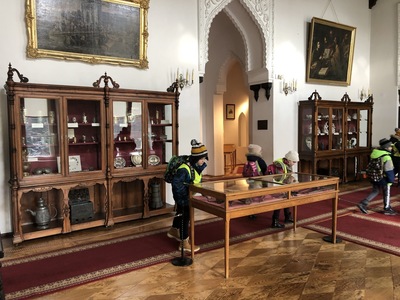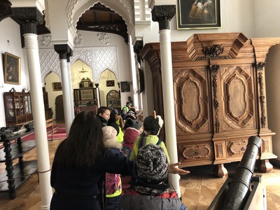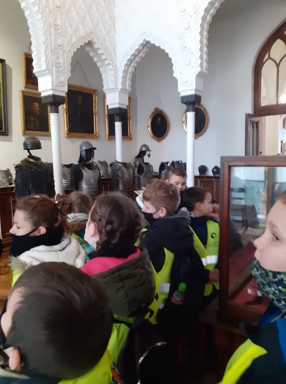 Z dworku w Koszutach uczestnicy wycieczki pojechali do Kórnika. Tam z przewodnikiem zwiedzali piękne komnaty. Oczy dzieci przyciągały oryginalne posadzki wykonane z różnych rodzajów drewna. Zachwyciło ich też wspaniałe mahoniowe biurko, przy którym pracował Tytus Działyński. Uczniowie mogli zobaczyć pokój Białej Damy, który zamieszkiwały tylko panie. W pomieszczeniu można było zachwycać się pięknymi, bogato zdobionymi zabytkowymi sprzętami, a także portretami rodziny Działyńskich. Chłopcy mogli zobaczyć dawne uzbrojenie; broń myśliwską, armaty, a także pełną zbroję husarską ze skrzydłem. W Zakątku Myśliwskim dzieci obejrzały wielkie poroża danieli i łosi oraz ciekawe eksponaty przyrodnicze i etnograficzne; pałki, bumerangi , kamienną siekierkę z Thaiti, maski czaszkowe przywiezione przez Władysława Zamoyskiego. Na koniec odbył się spacer po parku zamkowym.