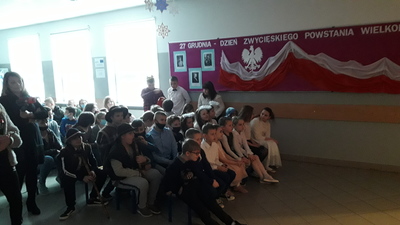 Po jasełkach opiekun SU p. Wojciech Hoffmann ogłosił wyniki konkursu na najładniejszy świąteczny wystrój klasy. W tym roku najciekawsze dekoracje przygotowała klasa V, drugie miejsce zajęła klasa VII, a trzecie – klasa VIII.