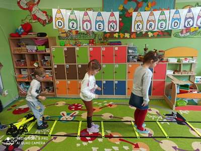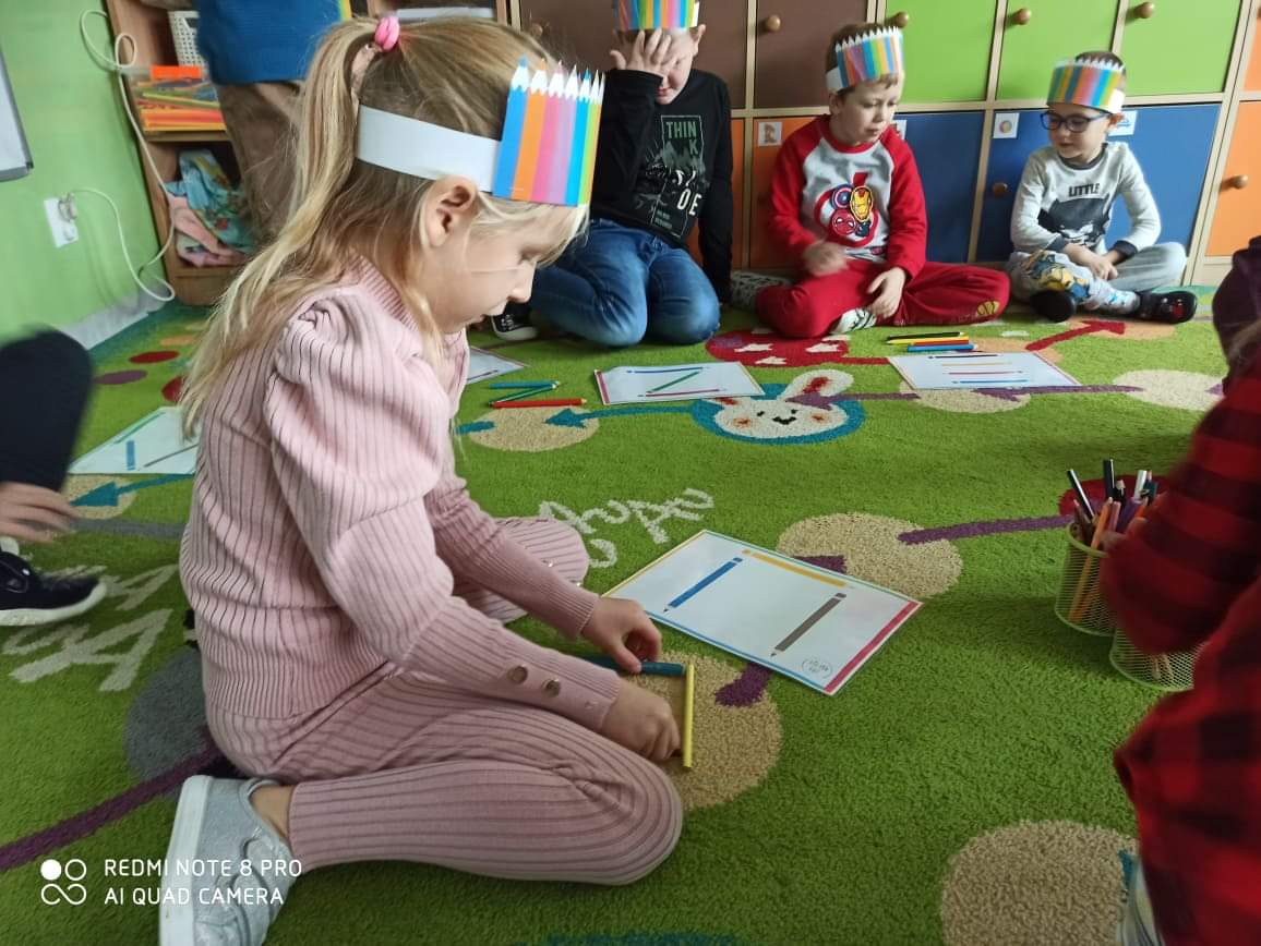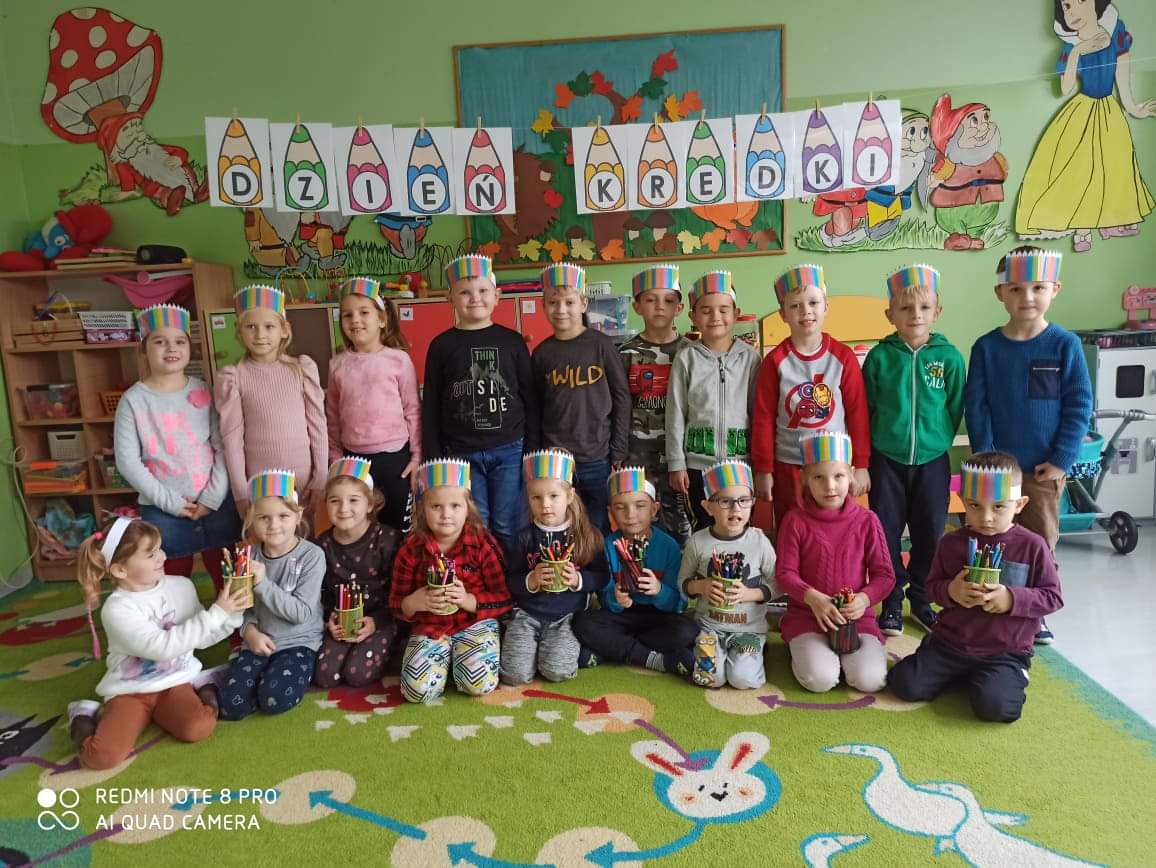 W poniedziałek 22 listopada br. obchodziliśmy w naszym przedszkolu Dzień Kredki. Święto to w szczególny sposób wiąże się z dziećmi, bowiem dzięki kredkom mogą one wyrażać swoje przeżycia, uczucia, myśli. Uczą się twórczego myślenia oraz rozwijają wyobraźnię. Rysowanie to wspaniała przygoda i ważne doświadczenie dla każdego dziecka. Z tej okazji odbyły się zabawy z kredkami w roli głównej. Przedszkolaki słuchały opowiadań, których bohaterami były kredki, poznały ich rodzaje oraz obejrzały krótki film o tym, jak są zrobione. Tworzyły zbiory kredek według kryterium koloru, kształtu, wielkości, rodzaju i porównywały ich liczebność. Bawiły się przy piosence „Kolorowe kredki”, kolorowały rysunki nawiązujące do jej treści, brały też udział w zabawach muzyczno-ruchowych.