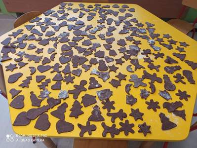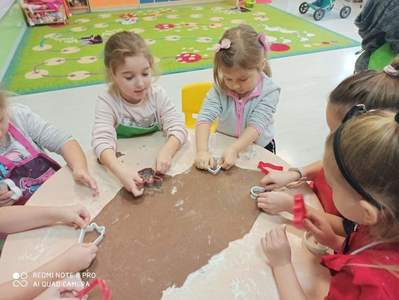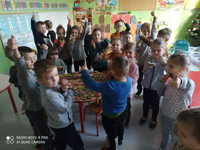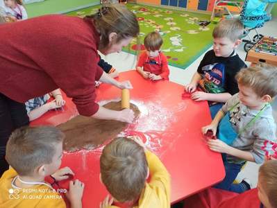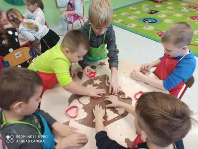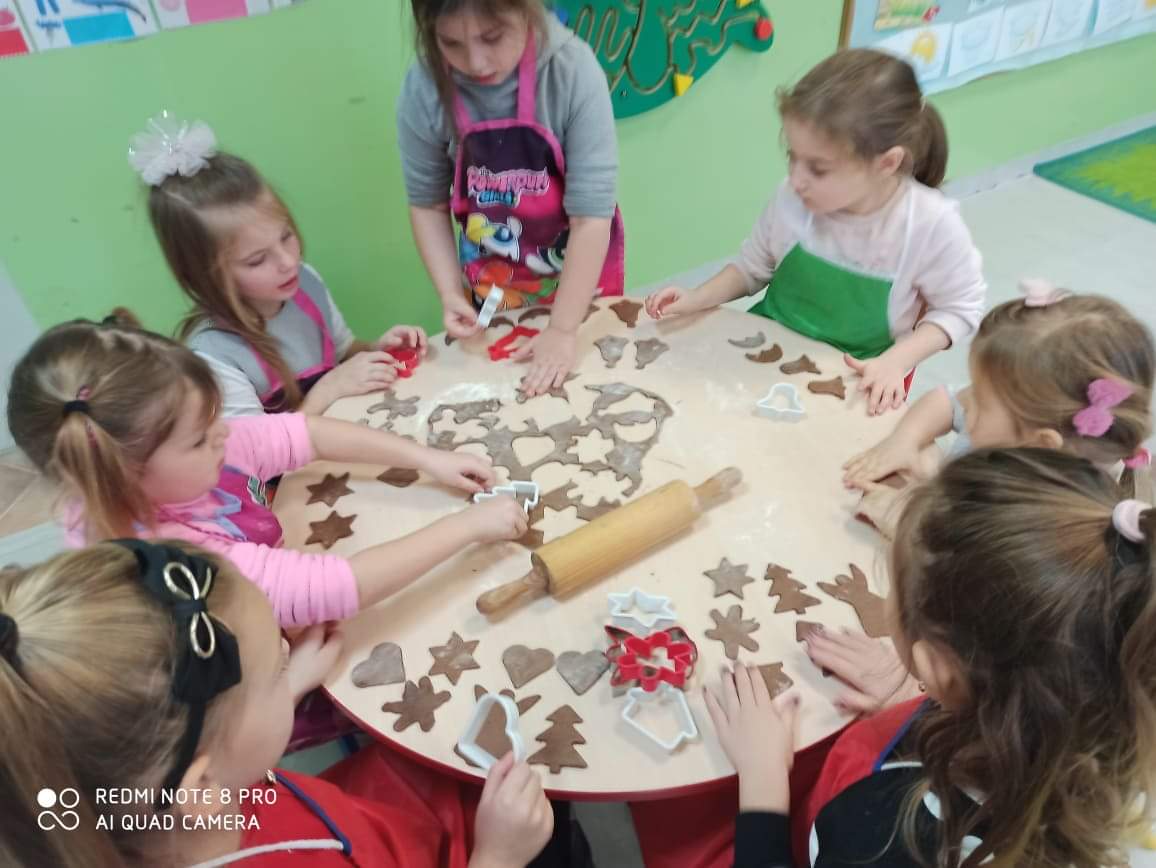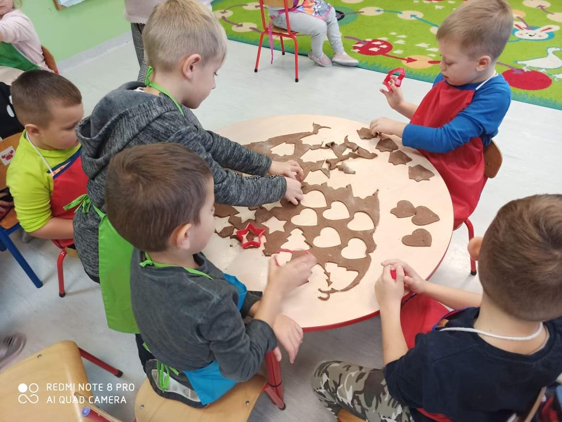 W pierwszym tygodniu grudnia dzieci z naszego przedszkola zgodnie z przedświąteczną tradycją upiekły pyszne świąteczne pierniczki. Z pomocą pań praca z przygotowaniem wypieków szła sprawnie i bez trudu. Przedszkolaki wygniatały i wałkowały ciasto. Wszystkim podobało się wykrawanie foremkami świątecznych kształtów – choinek, gwiazdek, bałwanków, aniołków.