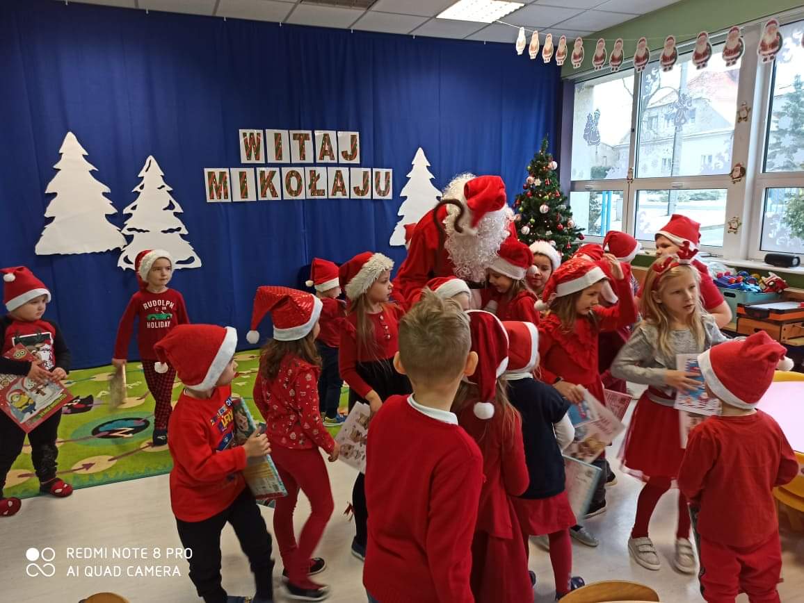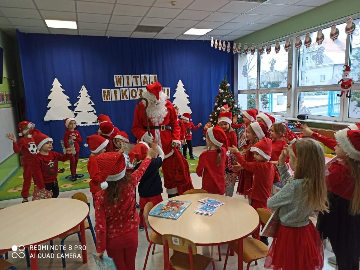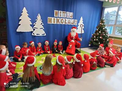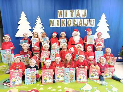6 grudnia to jeden z najbardziej wyczekiwanych przez dzieci dni w roku. Dzień „Mikołajek”- wyjątkowy i magiczny . Od rana wszystkie dzieci z wielką niecierpliwością spoglądały na drzwi, nasłuchując „mikołajowych” dzwoneczków. Kiedy Święty Mikołaj pojawił się w przedszkolu, został gorąco przywitany i zaproszony przez dzieci do sali. Miło spędzony czas uświetniły świąteczne piosenki przedszkolaków oraz słodkie upominki wręczane przez Mikołaja. Pamiątką tego spotkania były piękne zdjęcia dzieci ze Świętym Mikołajem.