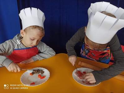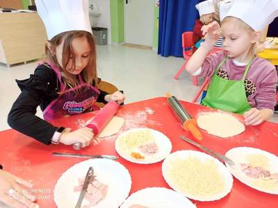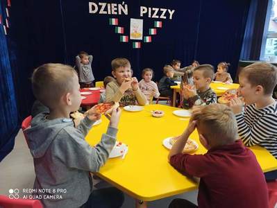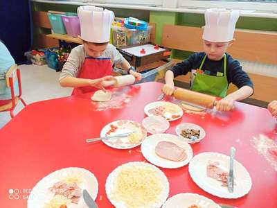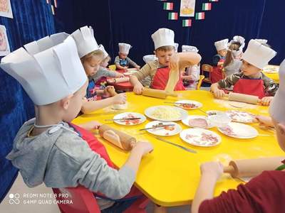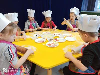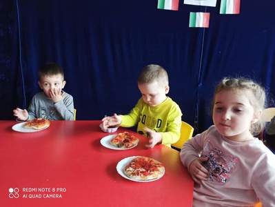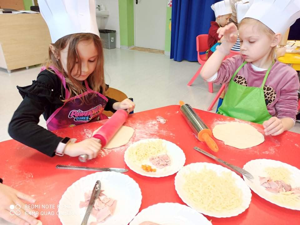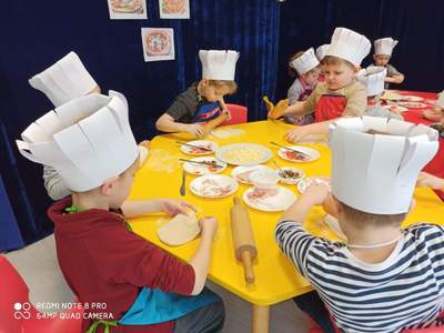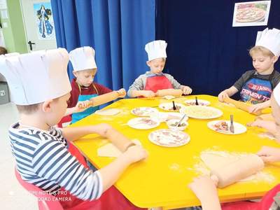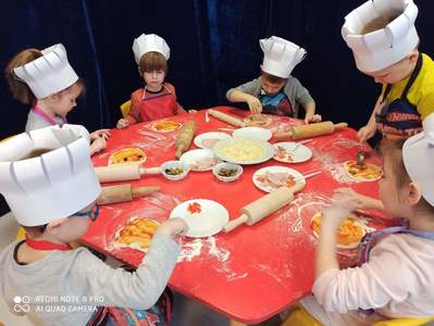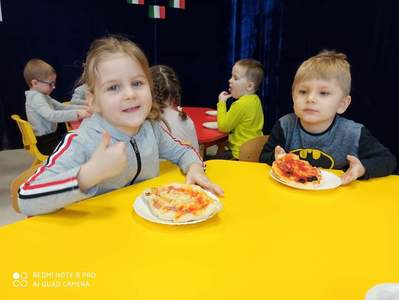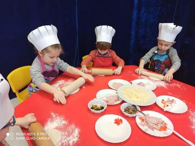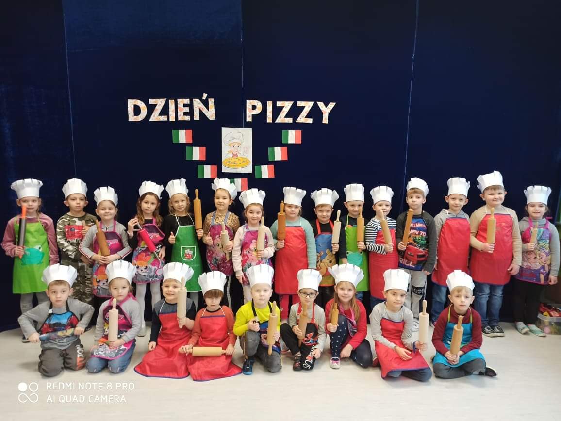 Pizza… Któż z nas jej nie lubi. Lubią dorośli, a jeszcze bardziej dzieci. Z okazji Międzynarodowego Dnia Pizzy postanowiliśmy bliżej poznać jej historię. 9 lutego dzieci dowiedziały się skąd pochodzi pizza, jakie są jej rodzaje oraz poznały etapy jej przyrządzania. Za pomocą zmysłów przedszkolaki odkrywały zapachy i smaki różnych składników. Na koniec każde dziecko stworzyło własną pizzę.