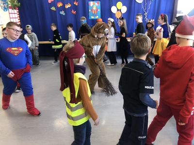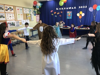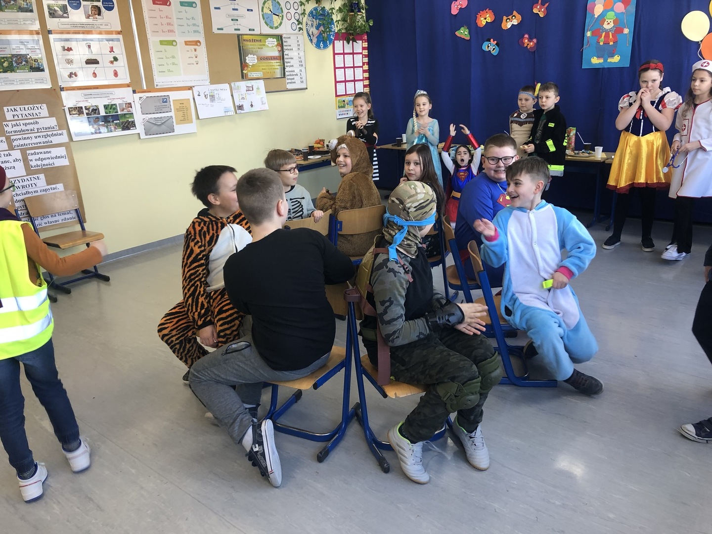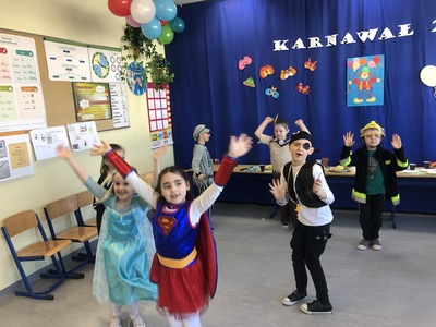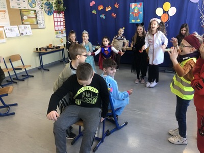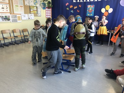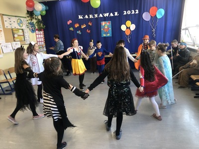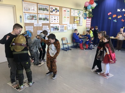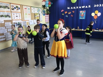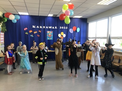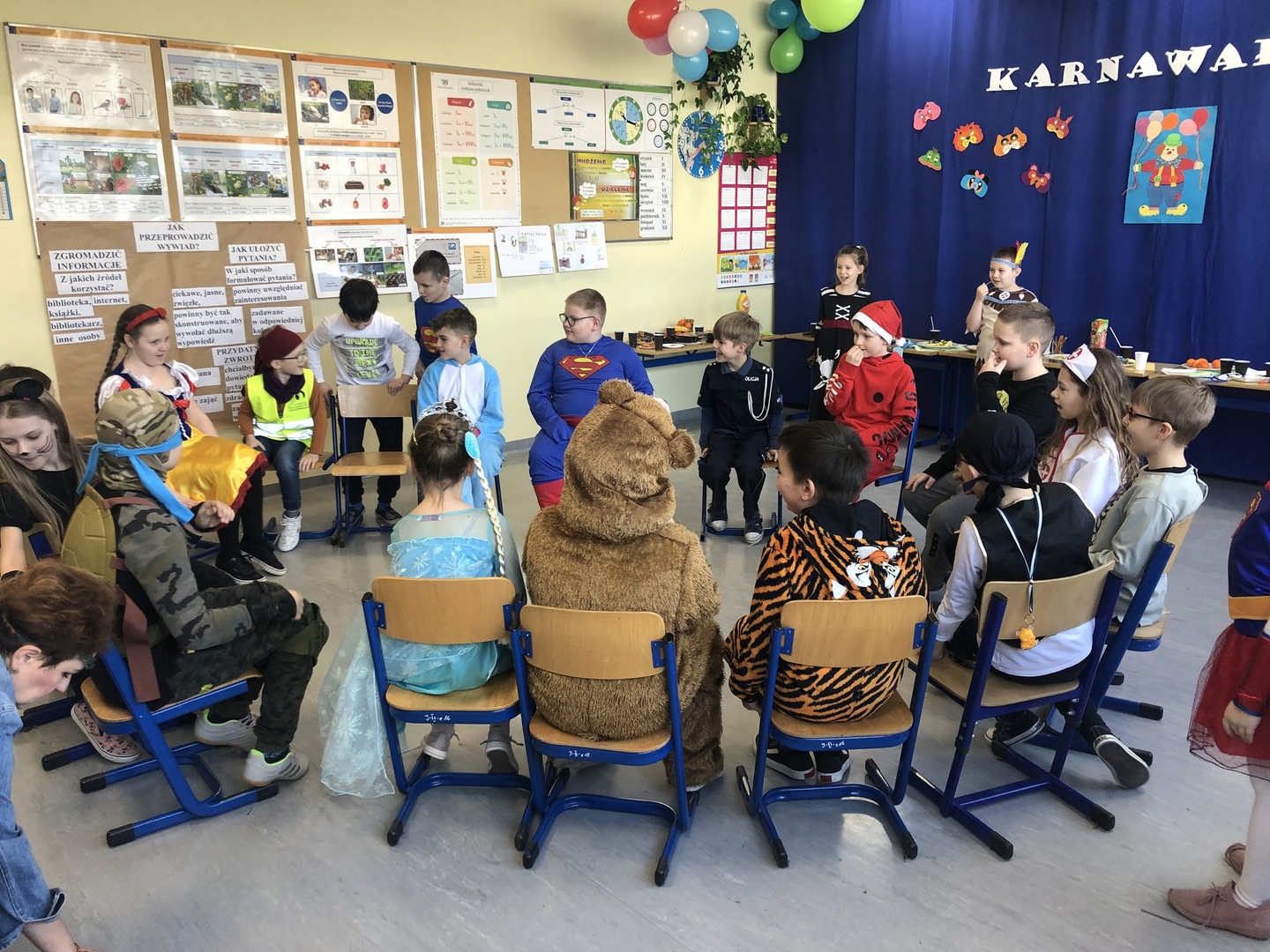 28 lutego 2022r w klasach I-III odbył się bal karnawałowy. Tego dnia w szkole pojawiły się kolorowe postacie. Wszyscy mieli piękne, pomysłowe przebrania - były więc księżniczki, wróżki, różne zwierzęta, piraci, superbohaterowie, postacie z bajek oraz przedstawiciele różnych zawodów. Dzieci tańczyły w rytm różnorodnej muzyki oraz brały udział w zabawach i konkursach. Dużo emocji dostarczył taniec z balonami, na gazetach, konkurs z krzesłami a także wędrująca przy dźwiękach muzyki miotła.Oczywiście nie zabrakło słodkiego poczęstunku.Wszyscy zgodnie przyznali, że to był udany bal.