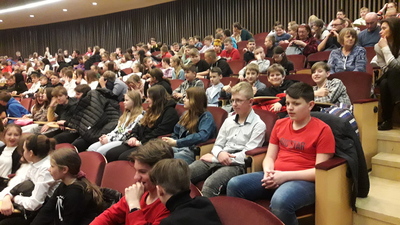 20 kwietnia uczniowie klas IV-VIII uczestniczyli w wyjeździe do Kalisza na spektakl teatralny pt. „Bogowie i herosi” przygotowany przez Teatr Muzyczny Forte z Wrocławia. Aktorzy w przystępny sposób zaprezentowali dziecięcej i młodzieżowej widowni charakterystyczne postacie greckich bogów i bohaterów uwiecznionych w mitach. Losy mieszkańców Olimpu i ich ziemskich znajomych zostały przedstawione w dynamiczny i komediowy sposób. Afrodyta, Atena, Tezeusz, Odyseusz i Syzyf sprzeczali się nieco, żartowali z siebie i komentowali swoje postępki. Scenki prezentujące ich czasami zabawne, czasami dramatyczne losy przeplatane były piosenkami i układami choreograficznymi. Dialogi pomiędzy olimpijskimi bogami i śmiertelnikami zostały wzbogacone o związki frazeologiczne, które do polszczyzny przeniknęły właśnie z kart mitologii.