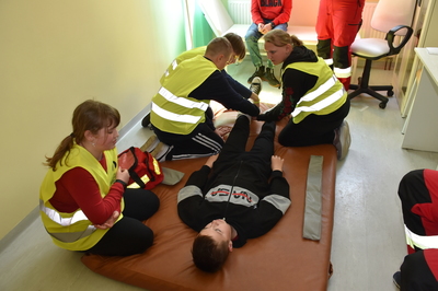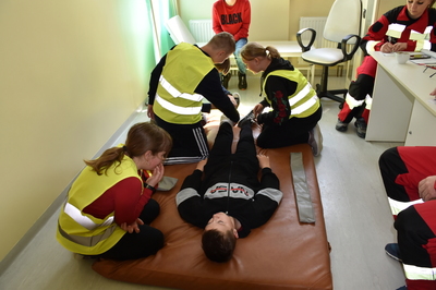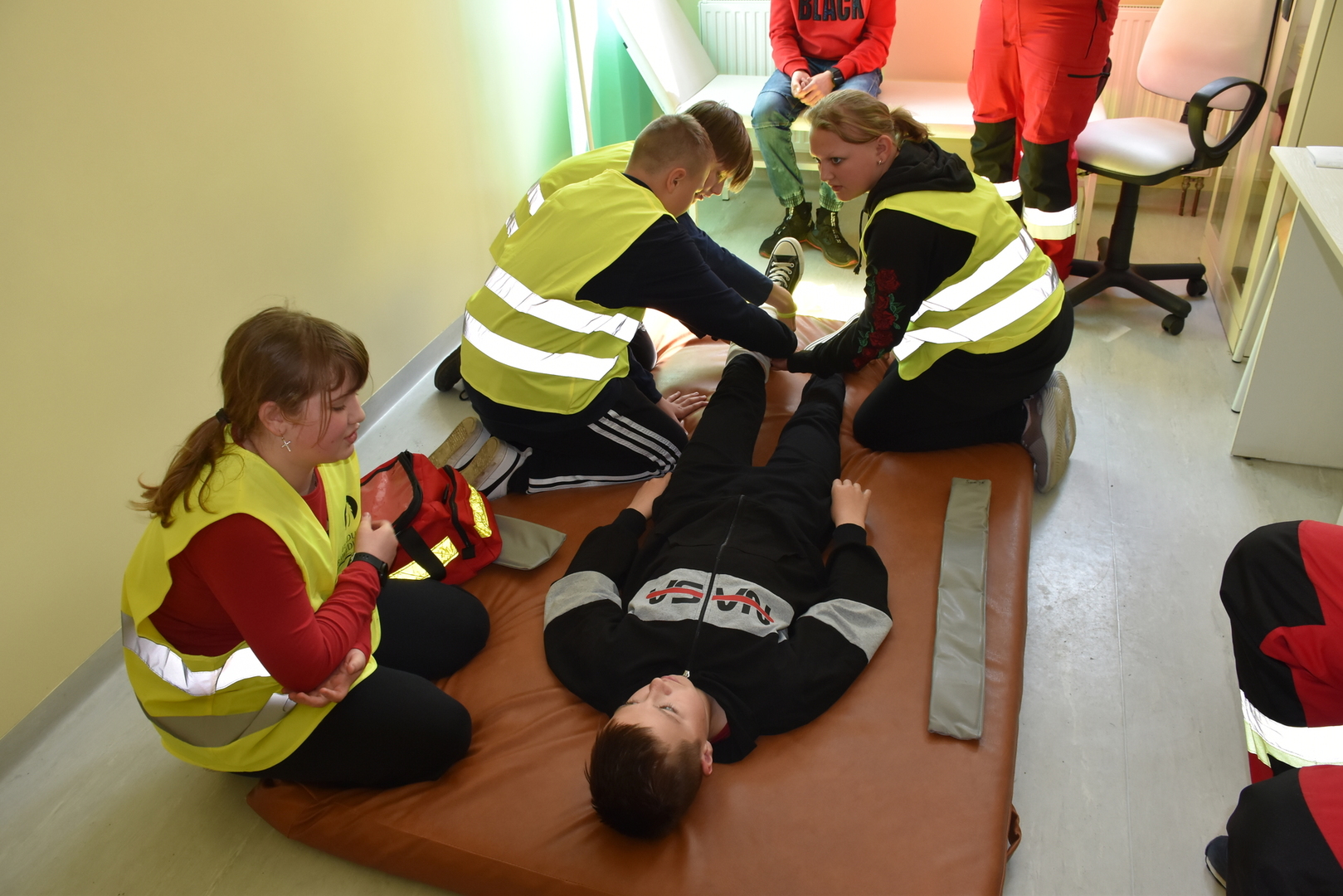 Kolejnym wyzwaniem, do którego tym razem uczniowie przystąpili drużynowo, było poprawne udzielenie pomocy przedmedycznej po wypadku komunikacyjnym. Prawidłowość wykonania tego zadania, a także umiejętność efektywnej współpracy oceniali ratownicy medyczni.