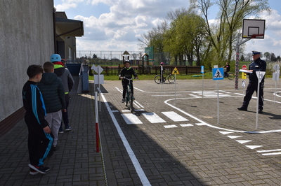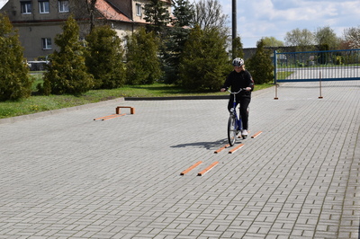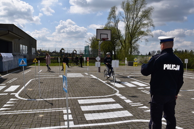 Następnie uczniowie pokonywali tor przeszkód, a na końcu spróbowali swoich sił w zgodnej z przepisami jeździe po przyszkolnym miasteczku ruchu drogowego. Poprawność przejazdów oceniali, oczywiście, policjanci.