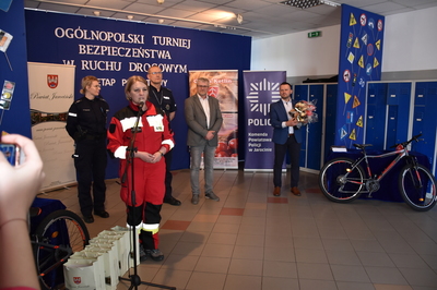 Oprócz uczestników turnieju i ich opiekunów Szkoła Podstawowa w Sławoszewie gościła również starostę Powiatu Jarocińskiego Lidię Czechak, przedstawicieli gmin Powiatu Jarocińskiego, a także policjantów i ratowników medycznych. Pod ich uważnym okiem rozgrywały się poszczególne turniejowe konkurencje. Szkoła w Sławoszewie jest zresztą bardzo dobrym miejscem na organizację tego typu przedsięwzięć z tego względu, że od października 2021roku funkcjonuje tam miasteczko ruchu drogowego. Jest to świetnie zorganizowana przestrzeń służąca dzieciom i młodzieży do nauki zasad prawidłowego uczestnictwa w ruchu drogowym i ćwiczeń utrwalających umiejętność bezpiecznego przemieszczania się po drogach.