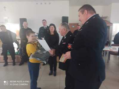 Dnia 12 kwietnia 2022r. na Sali Wiejskiej w Rusku zostały przeprowadzone powiatowe eliminacje Ogólnopolskiego Turnieju Wiedzy Pożarniczej „MŁODZIEŻ ZAPOBIEGA POŻAROM”, w których brało udział dwóch trzecioklasistów z naszej szkoły: Marcel Dorsz i Patryk Stefaniak. Uczestnicy zostali podzieleni na trzy kategorie wiekowe: klasy I-IV, V-VIII i szkół ponadpodstawowych. Rozwiązywali pisemne testy, który zostały ocenione przez komisję złożoną z doświadczonych strażaków. W trakcie ogłaszania wyników okazało się, że nasz uczeń z klasy III Marcel Dorsz zajął zaszczytne drugie miejsce. Oprócz wielkiej satysfakcji z sukcesu, Marcel otrzymał puchar dla szkoły oraz dyplom i nagrodę indywidualną. Nagrody zostały wręczone przez członków jury oraz starostę powiatu jarocińskiego p. Lidię Czechak.
