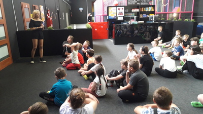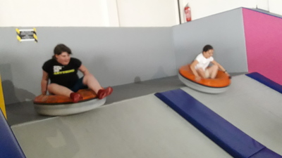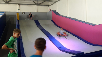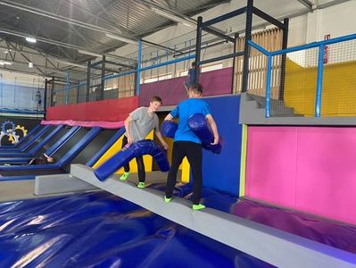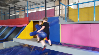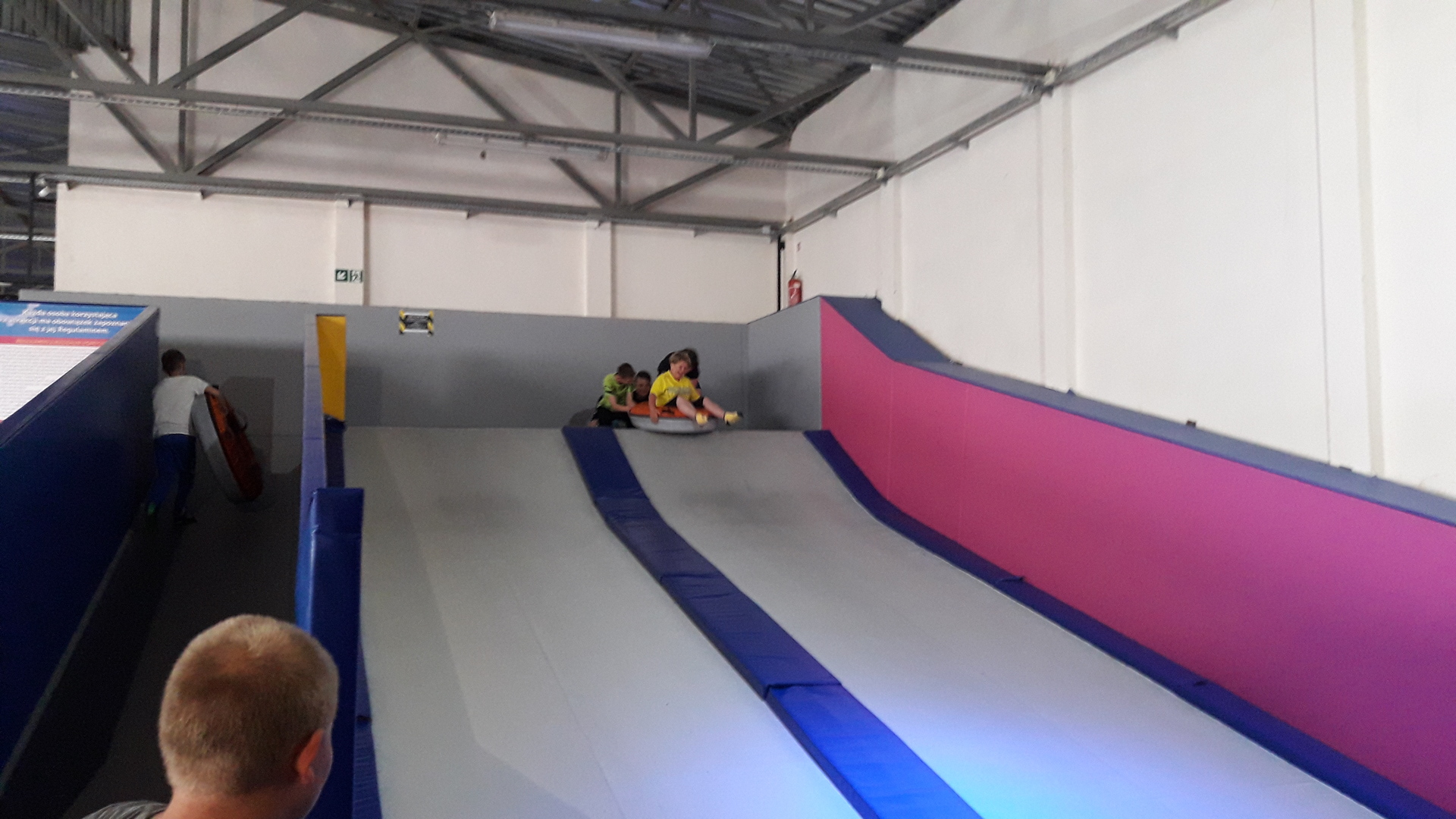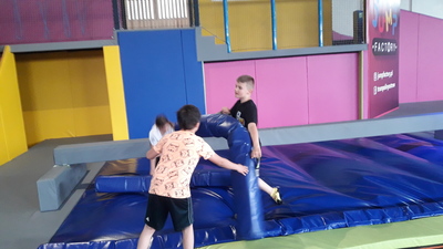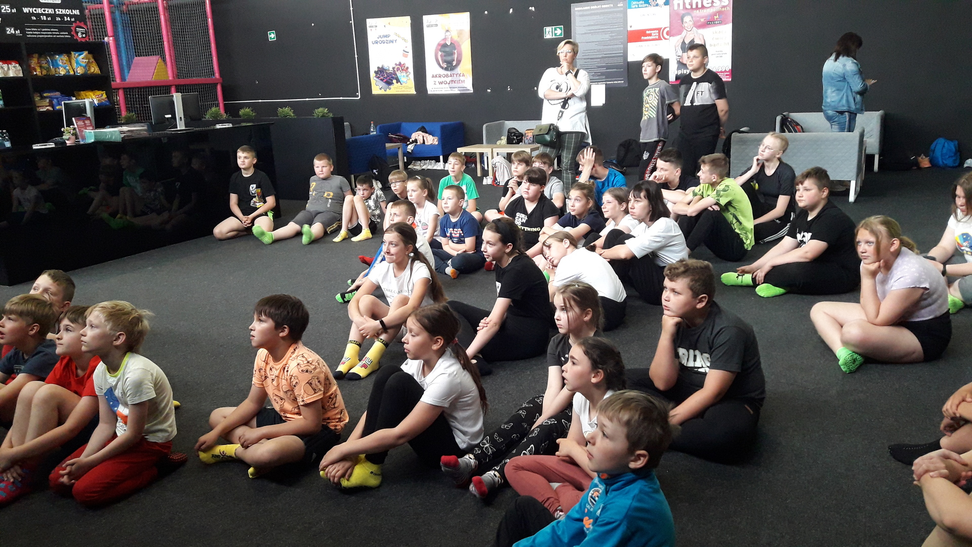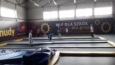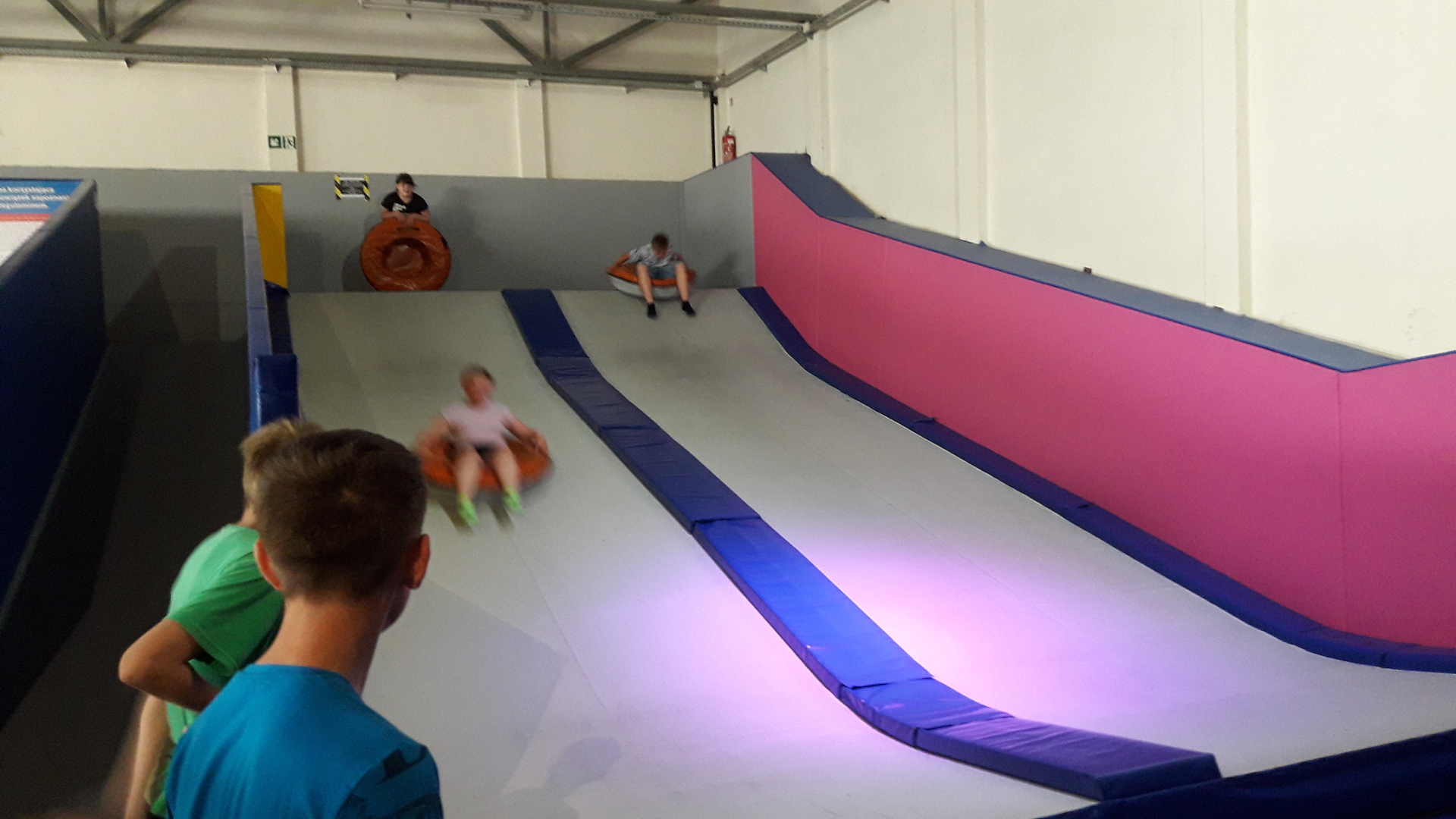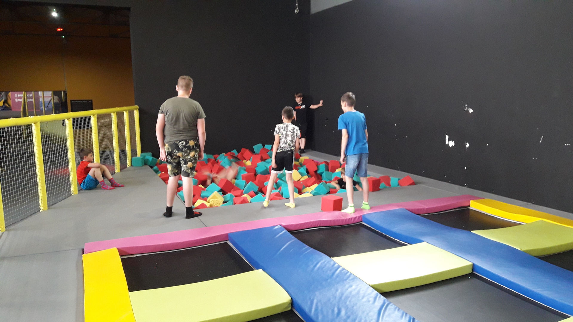 Wizyta rozpoczęła się od krótkiej instrukcji dotyczącej zasad bezpiecznego korzystania z dostępnych w hali obiektów. Pracownicy parku rozrywki przypomnieli również o konieczności włożenia antypoślizgowych skarpetek. Następnie uczestnicy wyjazdu ruszyli skakać na trampolinach, zanurzać się w kulkach i gąbczastych kostkach i zjeżdżać w pontonach. Zabawy w gladiatora, tworzenie budowli z ogromnych klocków czy pokonywanie ścieżek akrobatycznych sprzyjały ćwiczeniu zręczności, ale i międzyklasowej integracji.