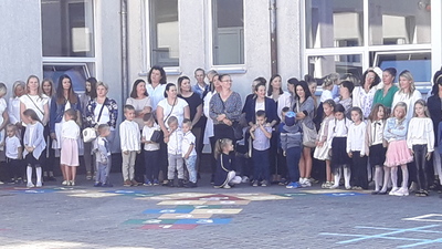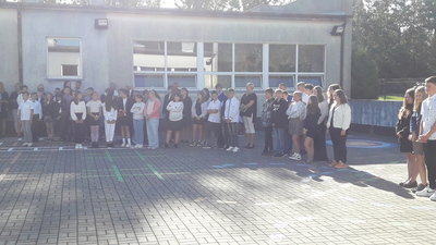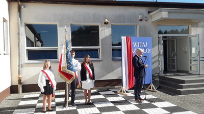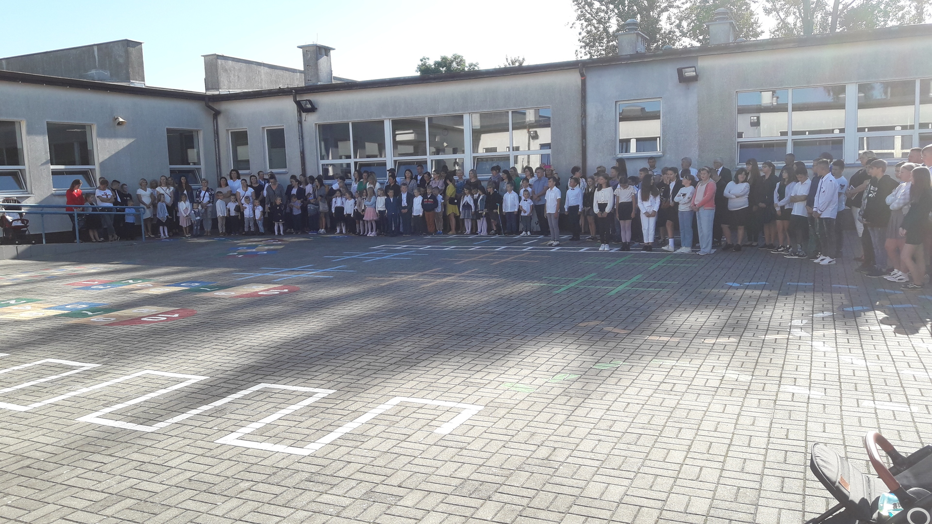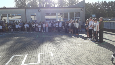 1 września na patio odbył się krótki apel z okazji inauguracji nowego roku szkolnego. Uroczystość rozpoczęła się od wprowadzenia sztandaru szkoły i odśpiewania hymnu państwowego. Zebranych, czyli uczniów, rodziców i nauczycieli przywitał dyrektor Roman Stolecki. Przedstawił uczestnikom spotkania nowych pedagogów i życzył uczniom sukcesów, na które będą pracować przez najbliższe dziesięć miesięcy. Szczególne słowa zachęty do nauki dyrektor skierował do ósmoklasistów. Dla nich ten rok będzie ostatnim spędzonym w „podstawówce”, warto więc by skoncentrowali się na obowiązkach, bo wtedy świadectwa, które odbiorą w czerwcu, będą powodem do zadowolenia, a może i dumy.