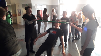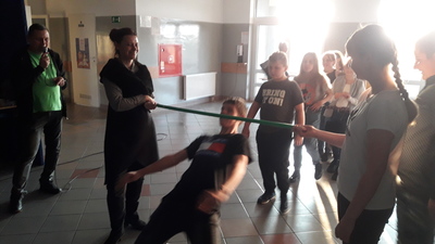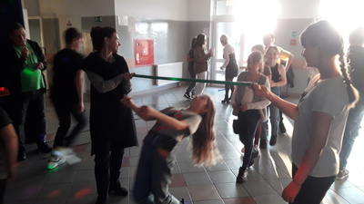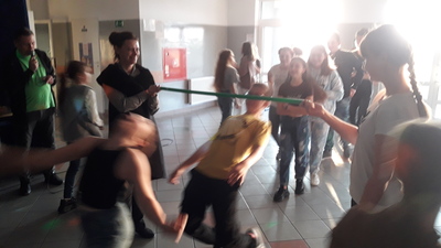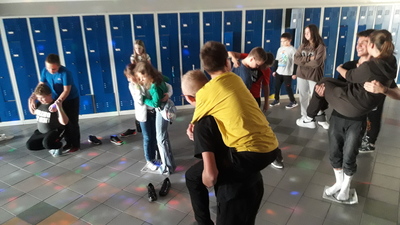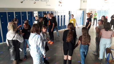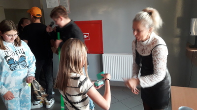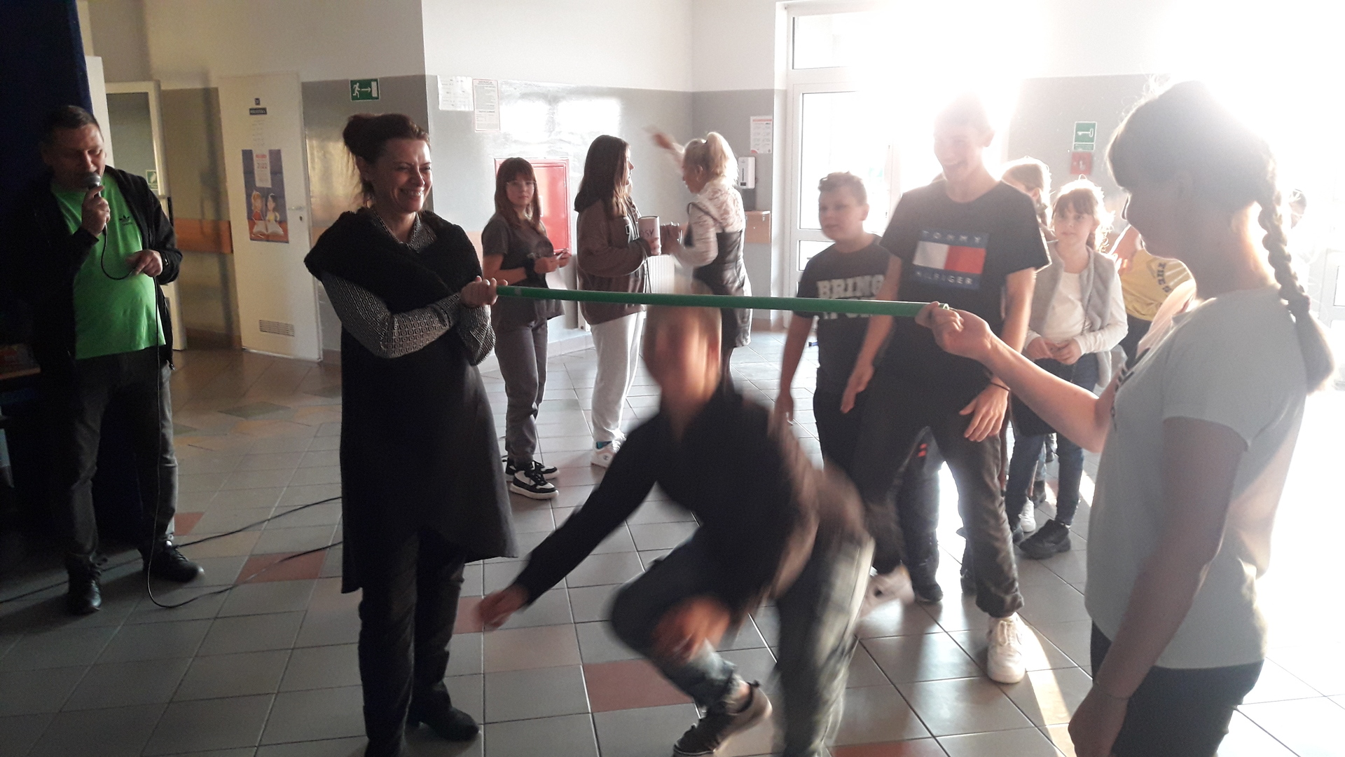 Dzieci i młodzież chętnie korzystały z możliwości wspólnych pląsów. Taneczny wąż czy popularne „kaczuszki” połączyły i debiutujących na takiej imprezie czwartoklasistów, i przebojowych ósmoklasistów. Każdy, kto chciał wziąć udział w zabawie, mógł tańczyć z koleżankami i kolegami do woli lub wziąć udział w konkurencjach sprawdzających zręczność, celność czy umiejętność wspólnego działania.