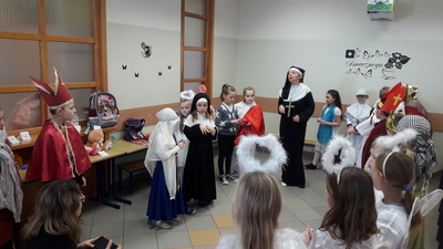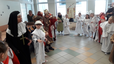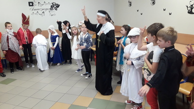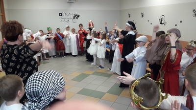 Od kilkunastu lat w Polsce 31 października obchodzi się Halloween. Jest jednak pogańskie święto, które nie jest zgodne z naszą wiarą – mówi katechetka, Beata Wieczorek. Dlatego też w wielu szkołach, salkach katechetycznych, domach katolickich są organizowane Bale Wszystkich Świętych. Taka impreza została także zorganizowana w szkole Podstawowej w Sławoszewie, Uczestniczyły w niej dzieci z klasy zerowej i klas I - III. Rodzice bardzo zadbali o stroje dla swych pociech. Kostiumy były bardzo różnorodne, kolorowe ale zarazem bardzo pomysłowe. Uczniowie często identyfikowali się z postacią świętego i potrafili powiedzieć na jego temat parę słów. Podczas balu uczniowie tańczyli przy muzyce znanych piosenek religijnych, brali udział w konkursach i zabawach.