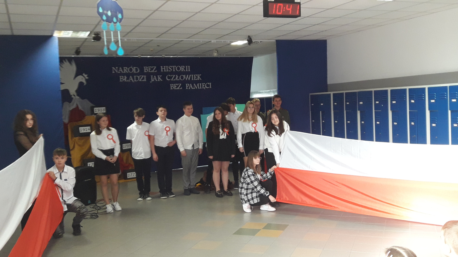 10 listopada w naszej szkole odbył się apel z okazji rocznicy odzyskania przez Polskę niepodległości. Występ został przygotowany przez klasę VIII i kółko teatralne pod kierunkiem wychowawcy Renaty Burchardt.