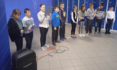Wypowiedzi narratorów uzupełnione zostały wesołymi rymowankami oraz piosenkami, wykonanie których czwartoklasiści przećwiczyli wcześniej z nauczycielem muzyki Eweliną Mróz.