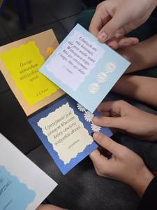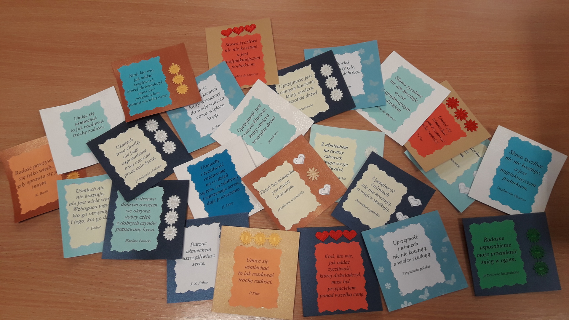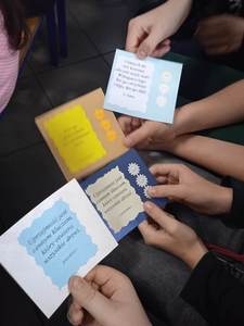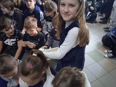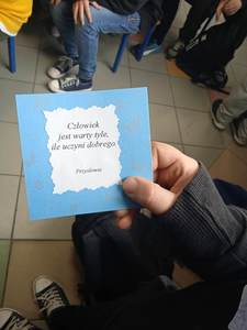 Oprócz występu uczniowie rozdawali ozdobne karteczki z sentencjami o życzliwości. Karteczkę można zachować na pamiątkę lub podarować komuś bliskiemu.