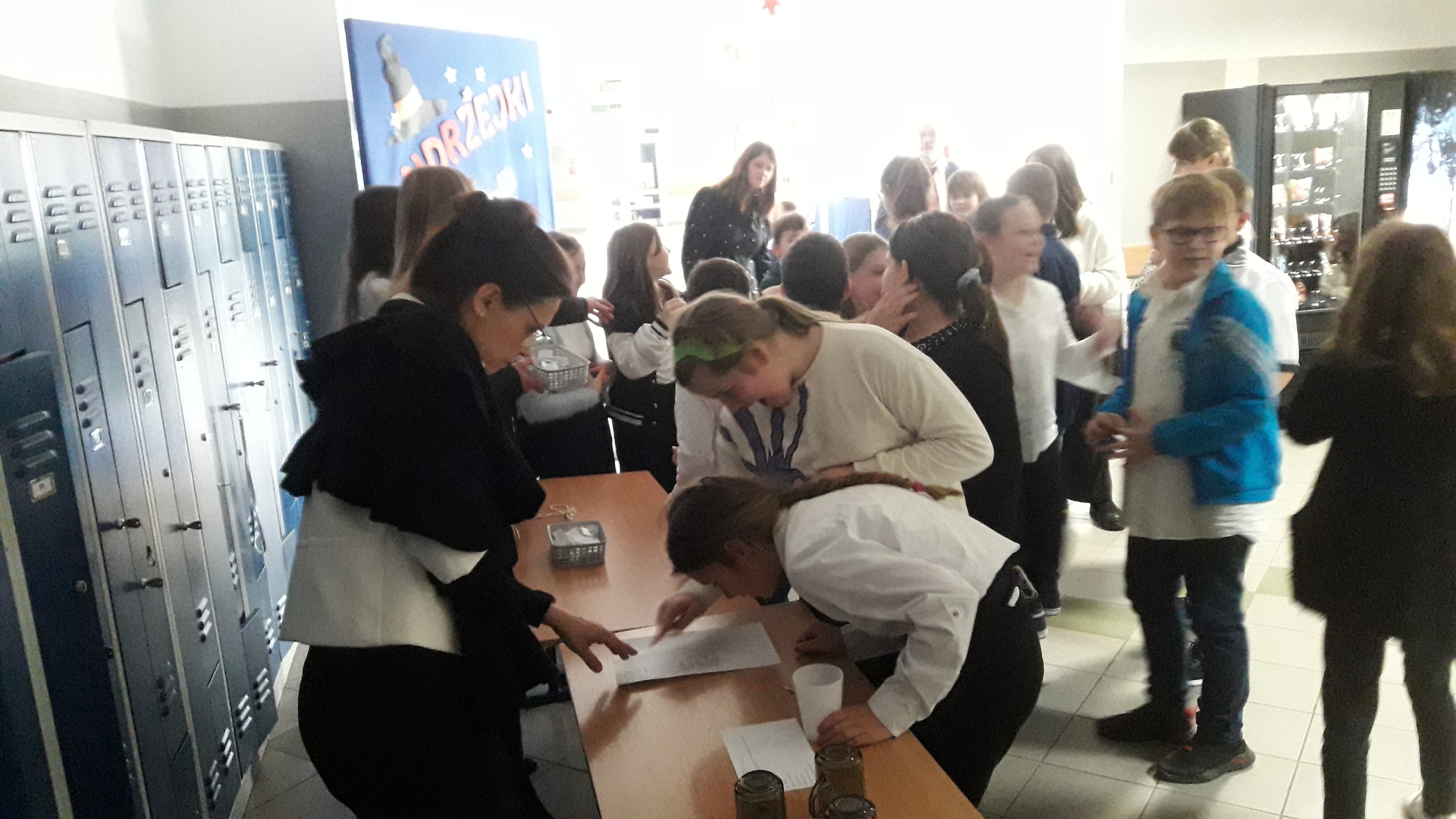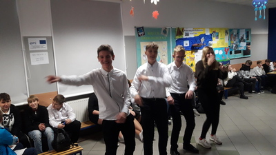 Po części oficjalnej obchodów Dnia Patrona uczniowie znów zasiedli w „sali kinowej”, by zapoznać się z ekranizacją książki Fiedlera pt. „Dywizjon 303”. Po napisach końcowych udali się na hol, gdzie odbyła się najbardziej swobodna część tego pełnego wrażeń dnia czyli dyskoteka andrzejkowa. Nauczyciele przygotowali również stoiska, na których można było skorzystać z porad wróżek i poznać swoją przyszłość. We wróżki wcieliły się panie: Renata Bucchardt, Emilia Przestacka i Marta Janowska. Oby dobre wróżby się spełniły!