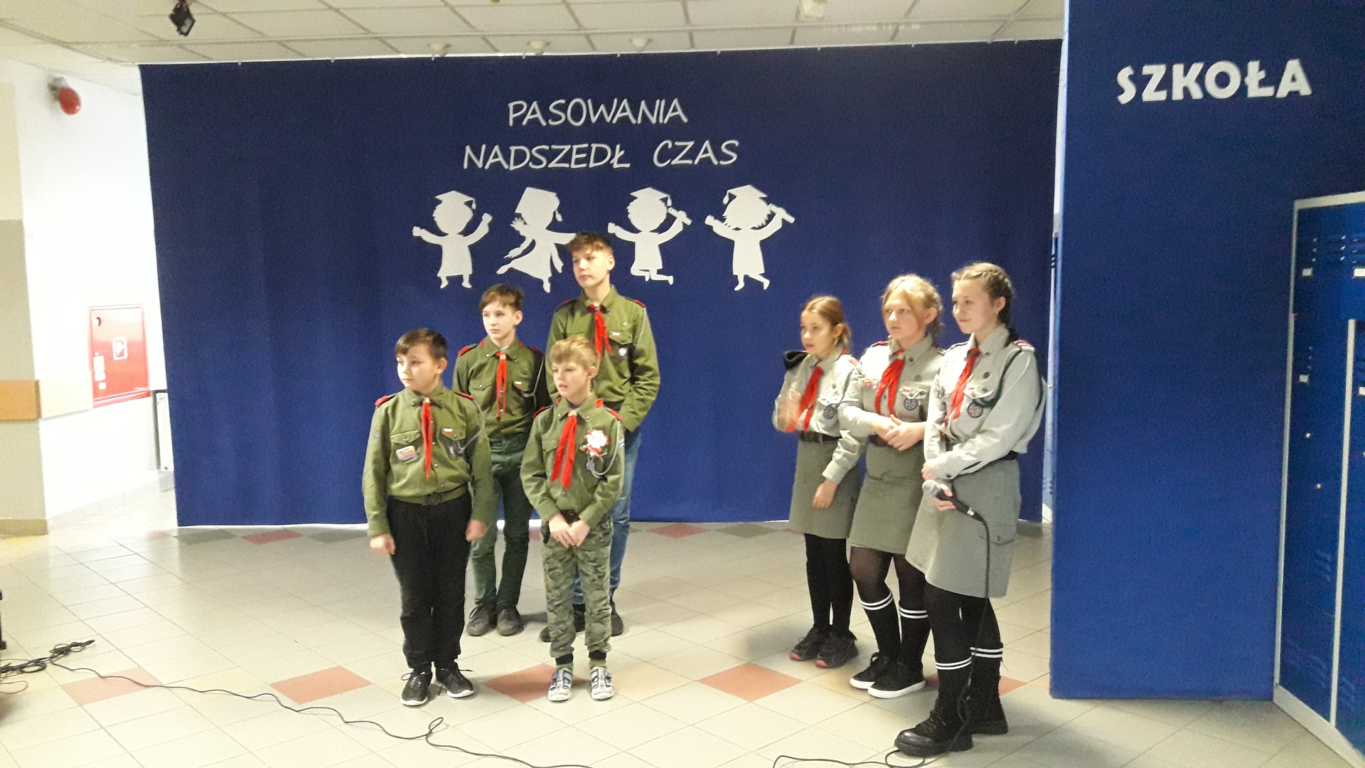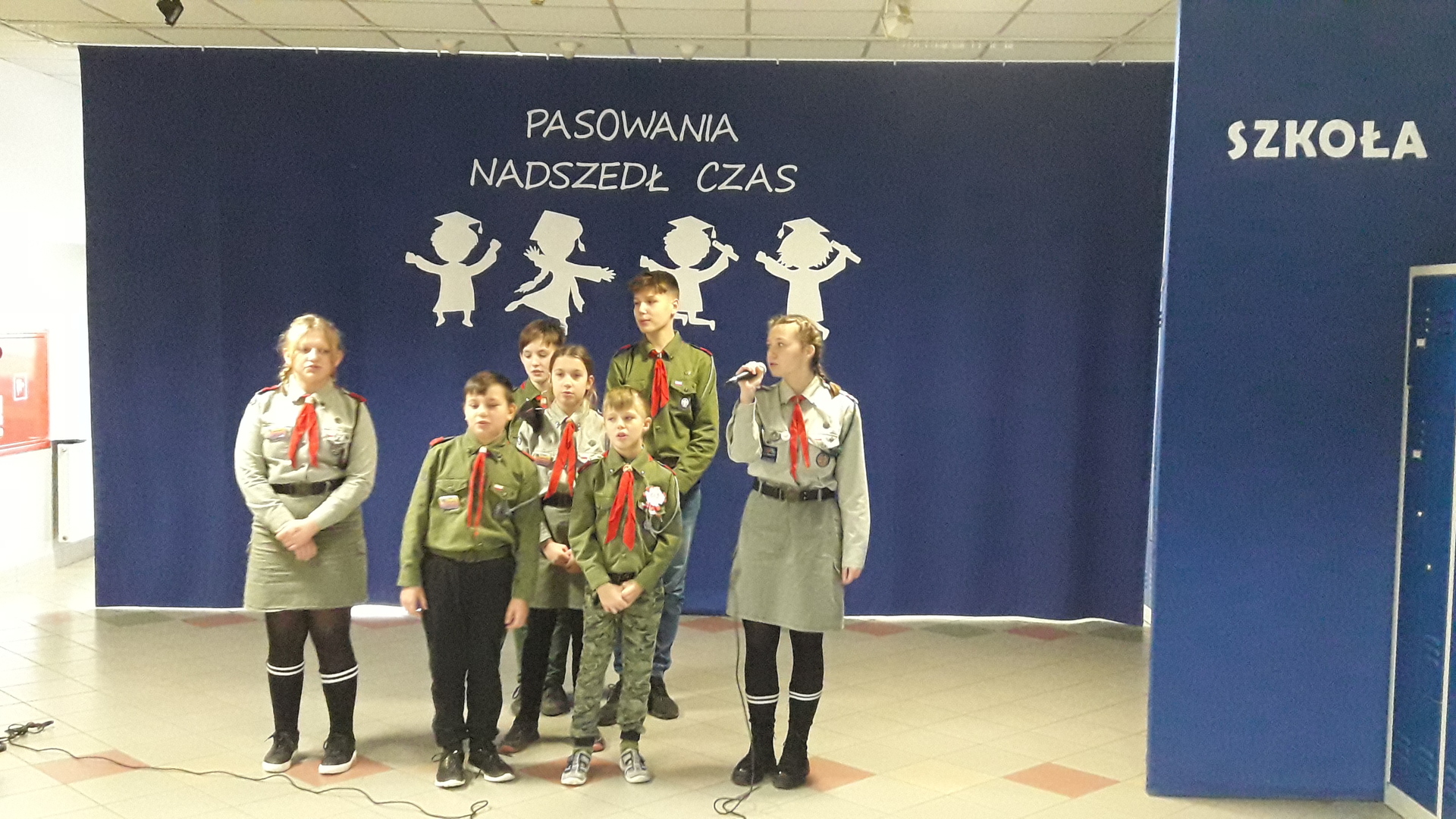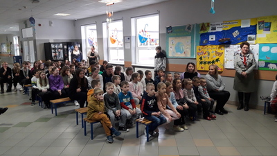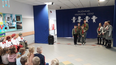 Występ przed znajomą publicznością ośmielił młodych wykonawców, który zaprezentowali dwie piosenki. Harcerze wykonali utwór pt. „Przybyli ułani", natomiast trzecioklasiści zaśpiewali „Pałacyk Michla”.