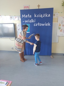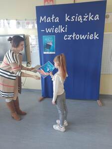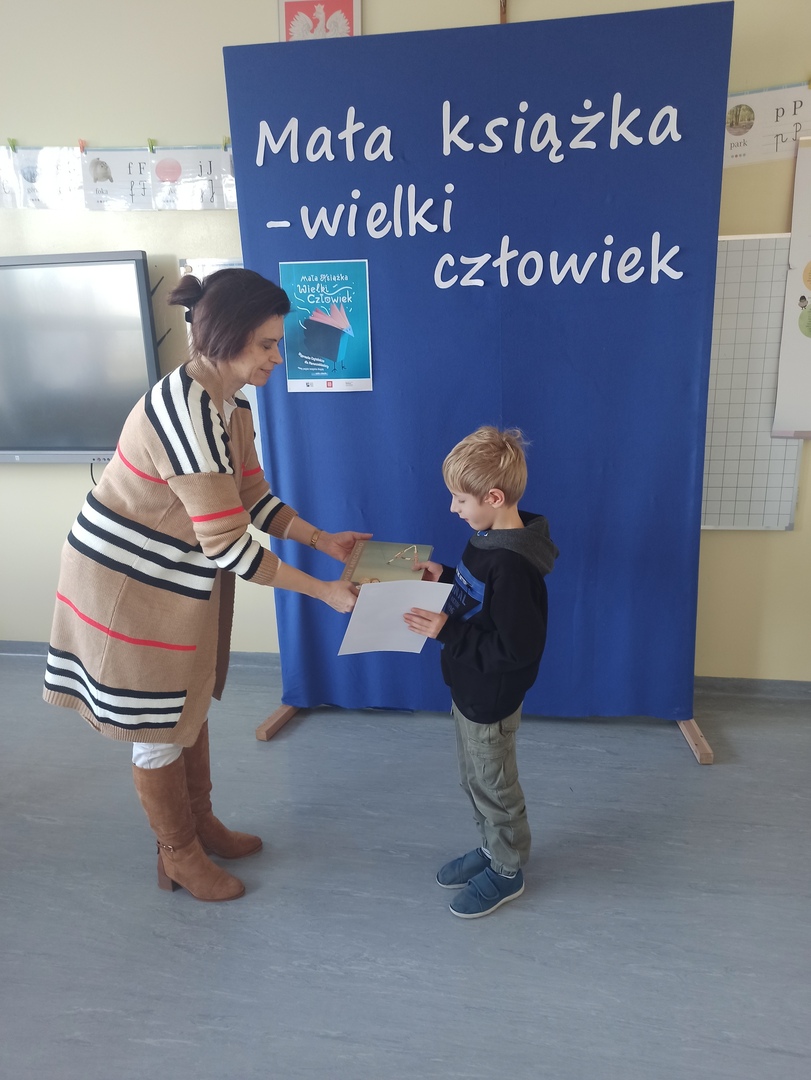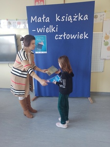 Pani bibliotekarki w obecności wychowawczyni wręczyła również uczniom dyplomy małego czytelnika.