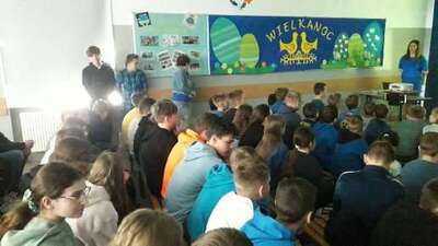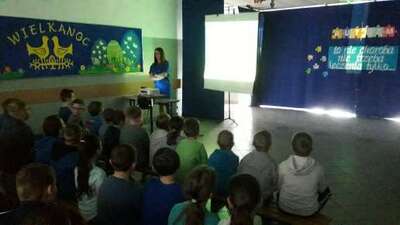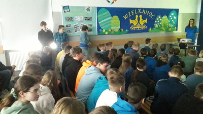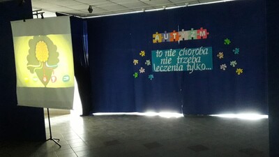 Podczas spotkania na holu, którego hasłem były słowa „Autyzm to nie choroba, nie trzeba leczenia, tylko…”, pani Martyna Pańczak omówiła problemy, z jakimi borykają się osoby z autyzmem. Jej wypowiedź uzupełniona została przez prezentację oraz animowany film przybliżające zebranym uczniom i nauczycielom, jak funkcjonują ludzie autystyczni oraz jak ich wspomagać w ich często niełatwej codzienności. Po wystąpieniu pani Pańczak dzieci otrzymały puzzle, na których napisały hasła będące uzupełnieniem zdania, które było opublikowane na holu.