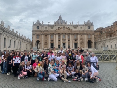 W weekend majowy uczniowie ze Szkoły Podstawowej w Sławoszewie zrzeszeni w Katolickim Stowarzyszeniu Młodzieży uczestniczyli w wycieczce do Włoch. Był to niezwykły wyjazd, gdyż młodzież organizowała różnorodne akcje i projekty podczas których zarabiała na ten wymarzony wyjazd. Wielkim wsparciem okazali się rodzice i ksiądz Proboszcz ze Sławoszewa, którzy wspierali inicjatywę młodzieży. „Nazbieraliśmy prawie 7 tysięcy złotych. Uważam, ze to duża suma. Uczniowie cały czas się angażowali i okazali się ogromną pomysłowością . Jestem z nich bardzo dumna♥️”Projekt się udał i uczniowie otrzymali vouchery za ogromny wkład pracy i zaangażowanie. W wyjeździe uczestniczyli także uczniowie z Zespołu Szkół Przyrodniczo - Biznesowych w Tarcach, którzy wspaniałe integrowała się z uczniami ze szkoły w Sławoszewie. Nie zabrakło także dorosłych. Okazali się oni wspaniałymi bajarzami i niezwykle humorystycznymi osobami, dlatego tez wyjazd przebiegał w bardzo pozytywnym i wesołym nastroju. „W tym krótkim czasie zdołaliśmy zwiedzić wiele ciekawych miejsc”, mówi jeden ze zdobywców vouchera Przemek Goły. „Urzekło nas wieczne miasto Rzym, Watykan, Montecatini-Terma, Piza,Florencja, Wenecja oraz bajkowa wyspa Burano”, wypowiada się uczennica ze szkoły w Tarcach, Julia Pankowiak. „Te wspaniałe i niesamowite wspomnienia na zawsze pozostaną w sercach wszystkich uczestników”, podsumowała organizatorka wyjazdu, Beata Wieczorek. Wycieczka została zorganizowana przez Biuro Podróży Funclub z Poznania, skąd była tez wspaniała przewodnik, Pani Ola, która nie tylko zintegrowała się z grupą wycieczkowa, ale także napisała o niej wiersz.