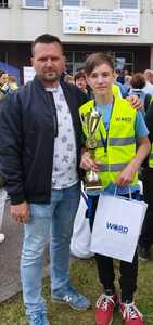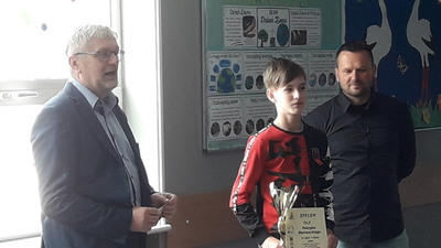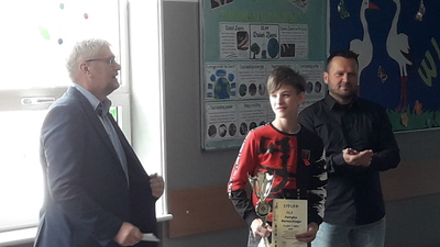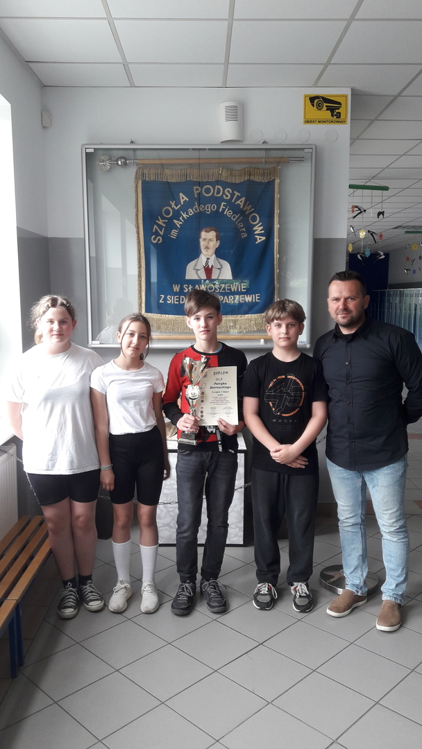 Razem z Patrykiem prezentującym puchar do wspólnego zdjęcia zapozowali członkowie jego drużyny: Lena Matuszewska, Klaudia Goździela i Szymon Woźniak.