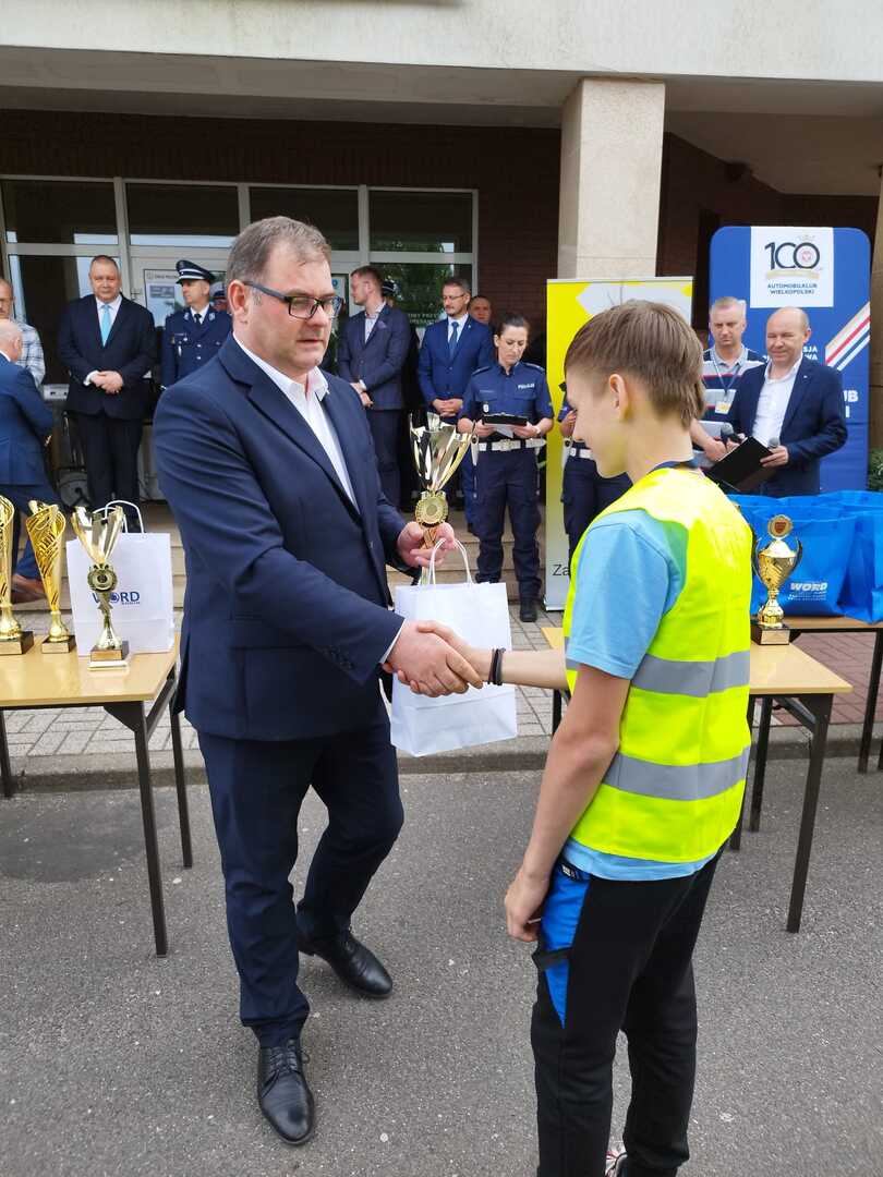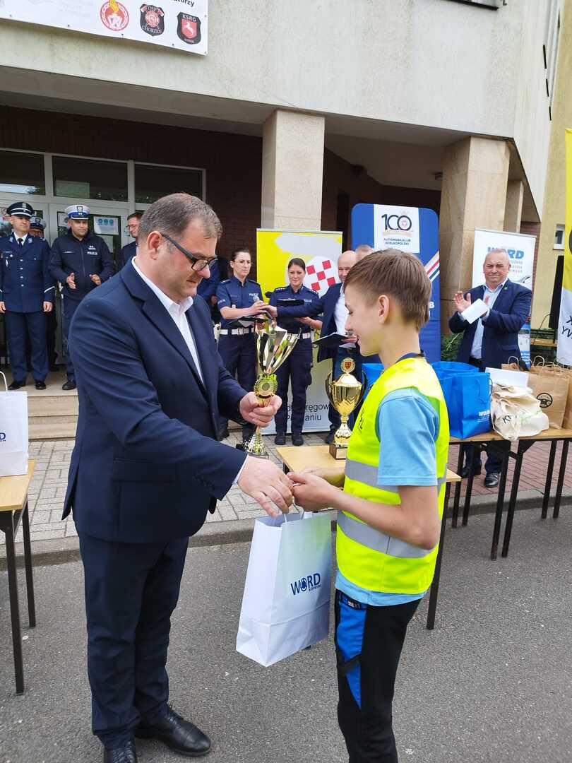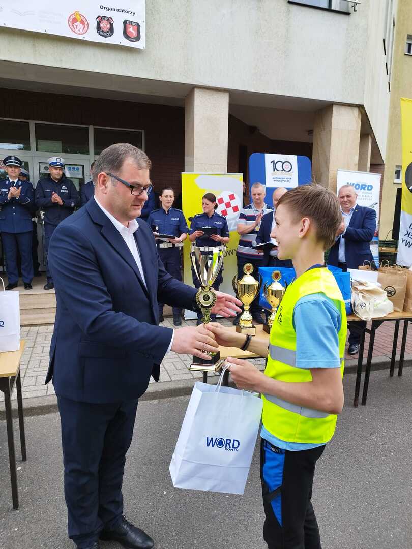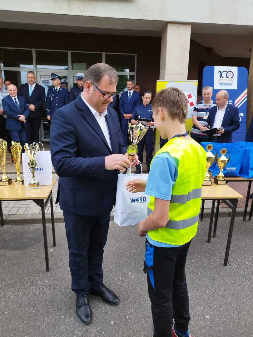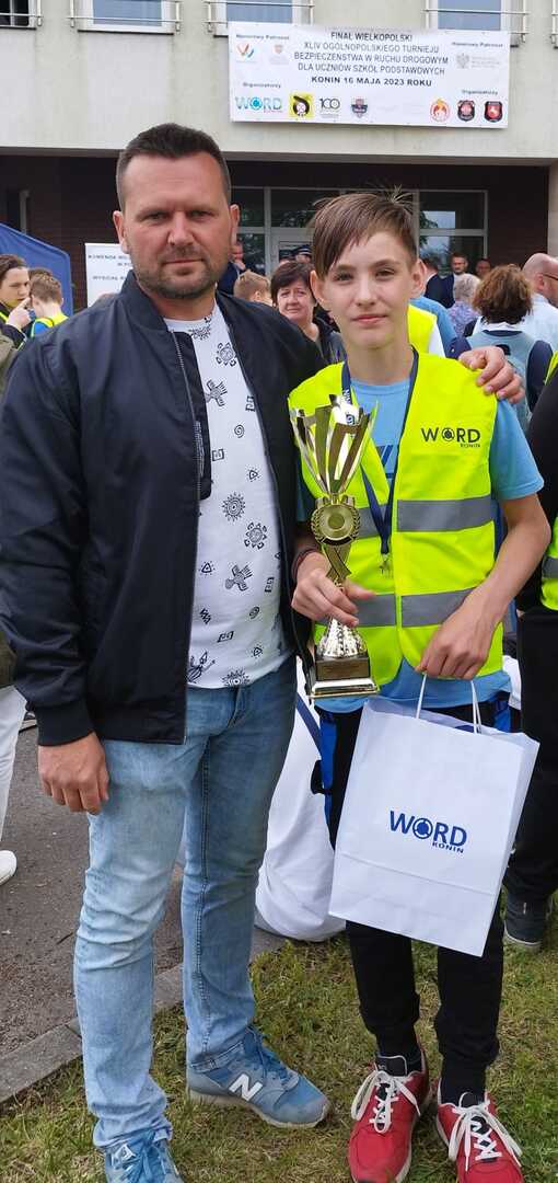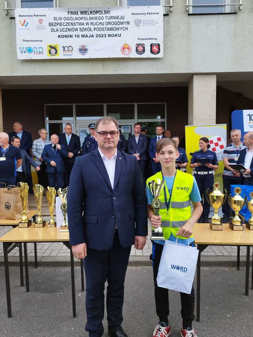 17 maja zgromadziliśmy się na naszym holu, żeby pogratulować drużynie, która reprezentowała nasz powiat podczas finału wojewódzkiego Ogólnopolskiego Turnieju Bezpieczeństwa w Ruchu Drogowym, który dzień wcześniej odbył się w Koninie. Szczególne gratulacje należą się Patrykowi Biernackiemu, który podczas turnieju osiągnął rewelacyjny wynik i wrócił do domu z wyjątkowym trofeum – jest to Puchar Dyrektora Wojewódzkiego Ośrodka Ruchu Drogowego w Koninie dla Najlepszego Zawodnika Finału Wojewódzkiego Ogólnopolskiego Turnieju Bezpieczeństwa w Ruchu Drogowym wśród szkół podstawowych w I grupie wiekowej.