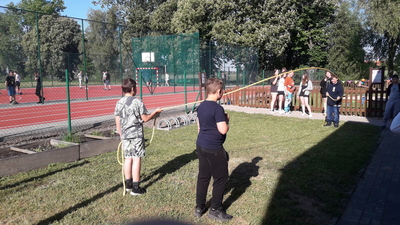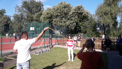 Część uczniów od razu pobiegła na boisko, gdzie przez niemal trzy godziny wytrwale rozgrywali mecze piłki nożnej. Czwartoklasiści zajęli część patio, gdzie rozgrywali rundkę chińczyka. Jedną z większych atrakcji okazało się skakanie przez linę. Nawet niektórzy wychowawcy nie mogli się oprzeć i spróbowali sił w zabawie, którą pamiętali ze swojego dzieciństwa. Ku uciesze kibicujących dzieci nauczyciele zwinnie radzili sobie z wyzwaniem. A na boisku właśnie rozpoczął się kolejny mecz.