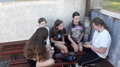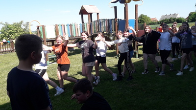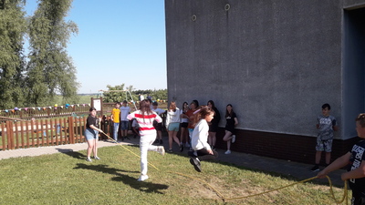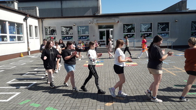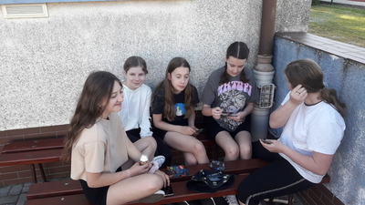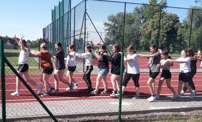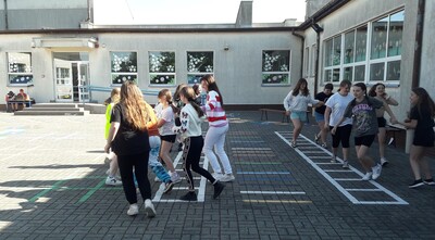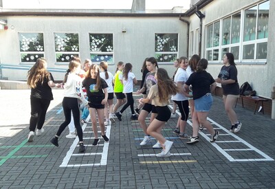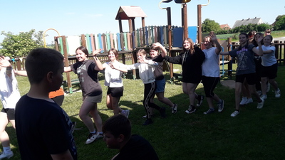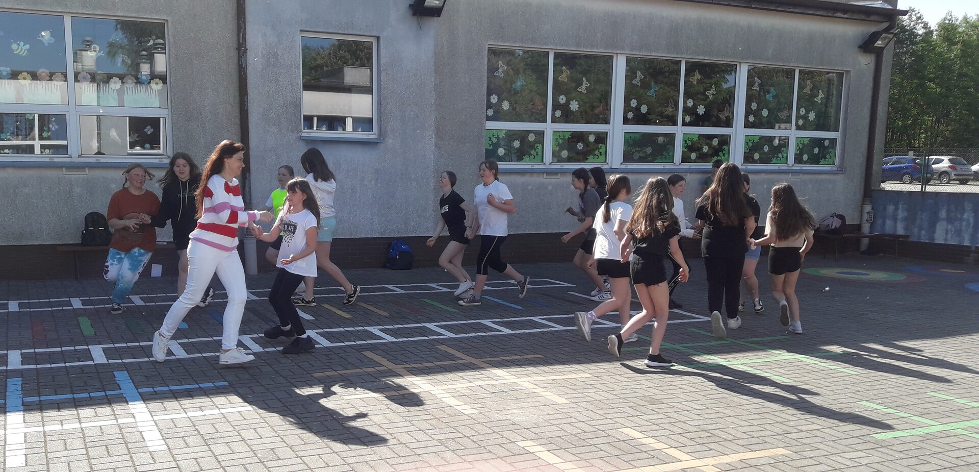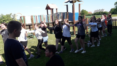 Od czasu do czasu amatorzy skocznej muzyki spotykali się na patio, gdzie przyłączali się do integracyjnych zabaw np. tańczyli popularną belgijkę czy kaczuszki albo jechali pociągiem po prawie całym przyszkolnym terenie. Przejeżdżając obok boiska można było pomachać piłkarzom, bo… tam nadal trwał mecz. J