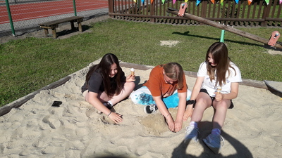 Nie tylko nauczyciele wrócili we wspomnieniach do wczesnych dziecięcych lat. Kilka dziewczyn rozsiadło się w piaskownicy i zbudowało z piachu średniowieczny gród z fosą. Tymczasem na boisku właśnie strzelono kolejnego gola.